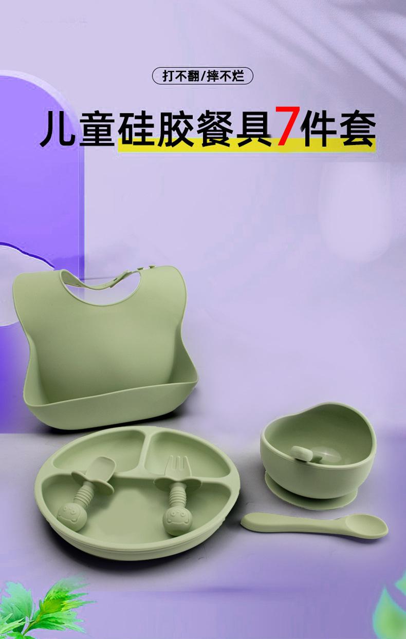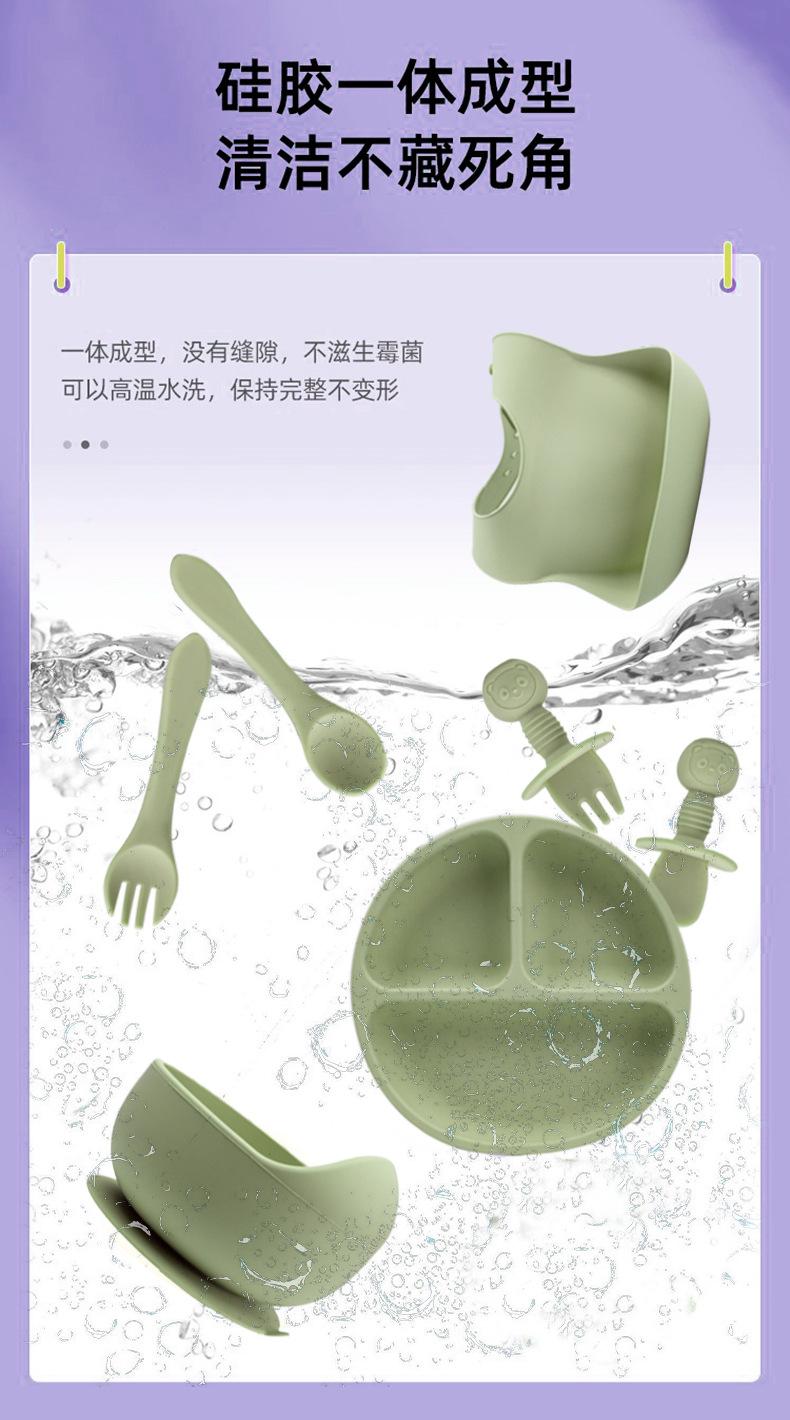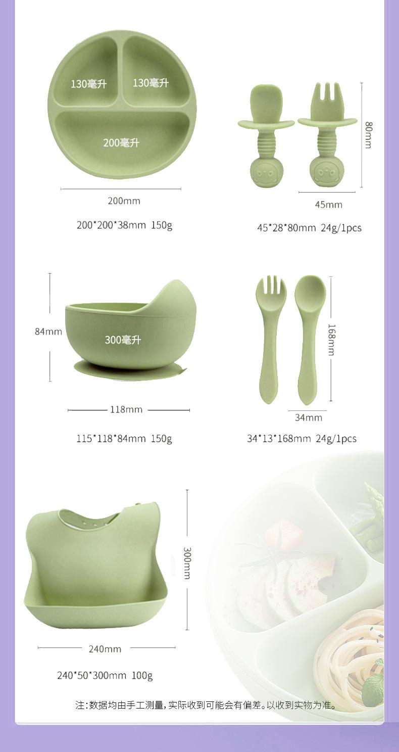 Vajilla Anticaída para Bebé Juego de Ocho Piezas Tazón para Comida Infantil Plato para Cena Tenedor Cuchara Vajilla de Entrenamiento Vajilla de Silicona para Alimentar Alimentos