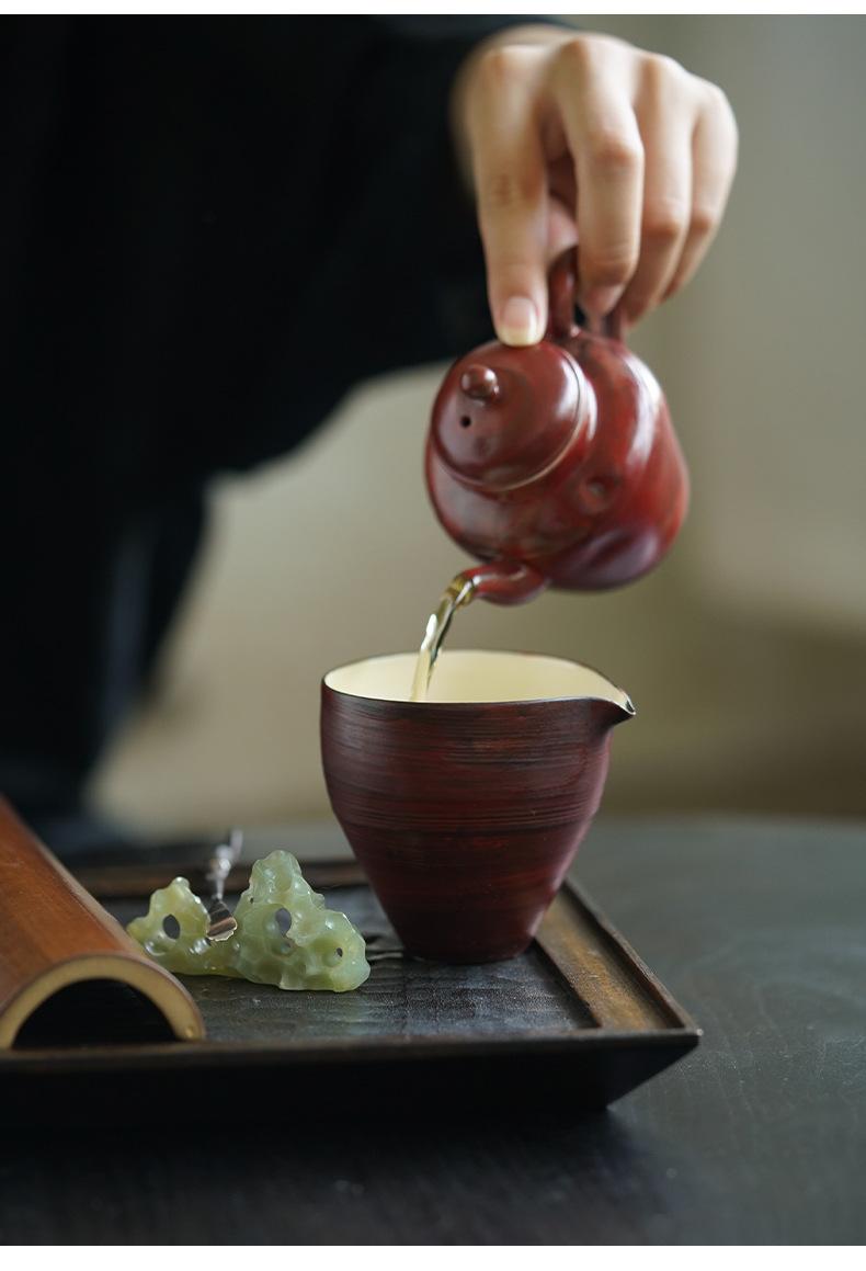 Taza para ceremonia del té Miyan Haw, de color rojo y rosa, dispensador de té japonés de gres hecho a mano, taza de uniforme retro, accesorios para la ceremonia del té de kung fu