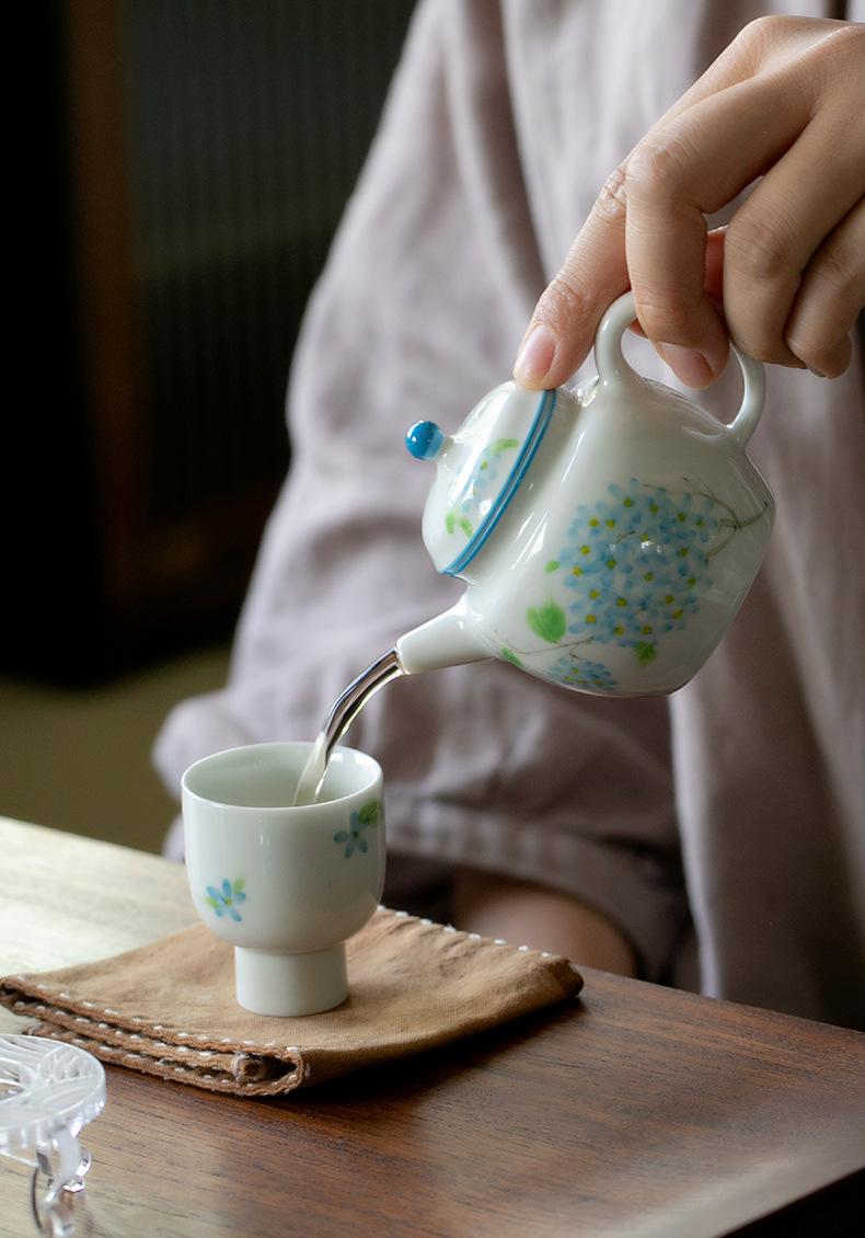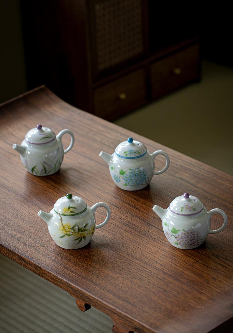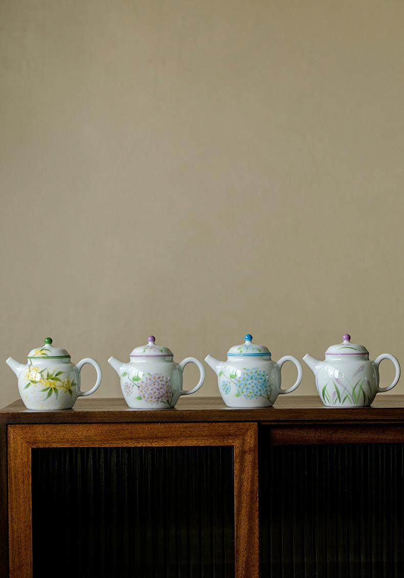 Hand-painted hydrangea teapot, Hand-painted lavender teapot, Hand-painted osmanthus teapot, Hand-painted blue ...