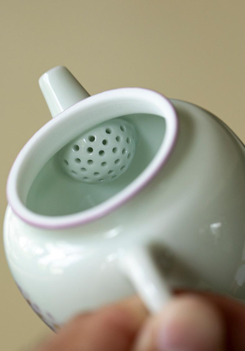 Tetera de cerámica pintada a mano, juego de té Kung Fu, tetera retro para el hogar, tetera con filtro de un solo orificio en forma de pera.