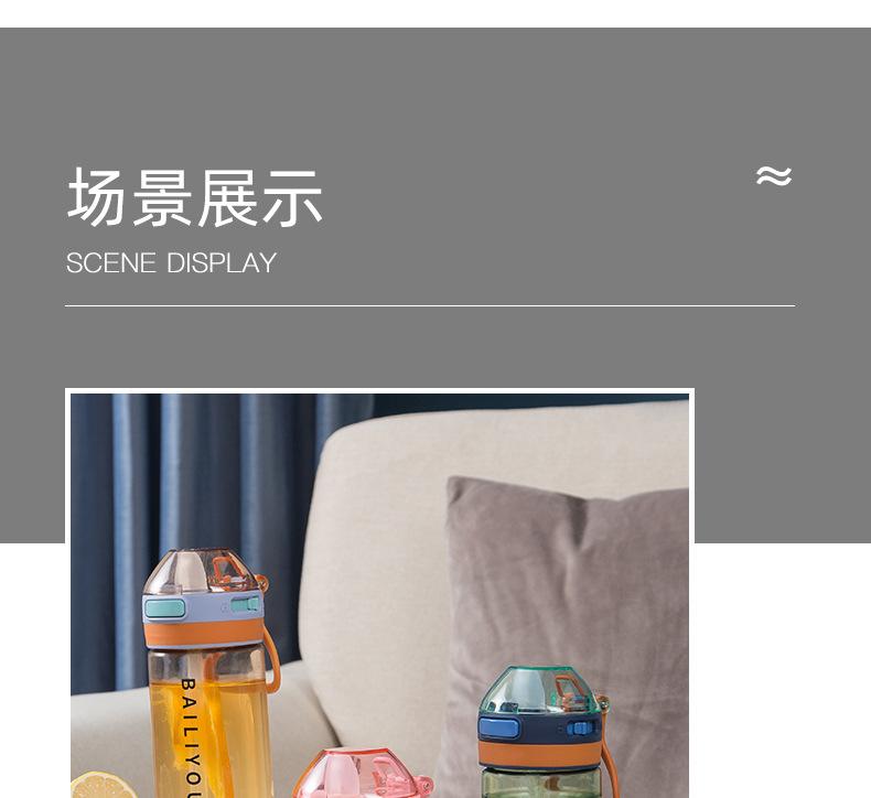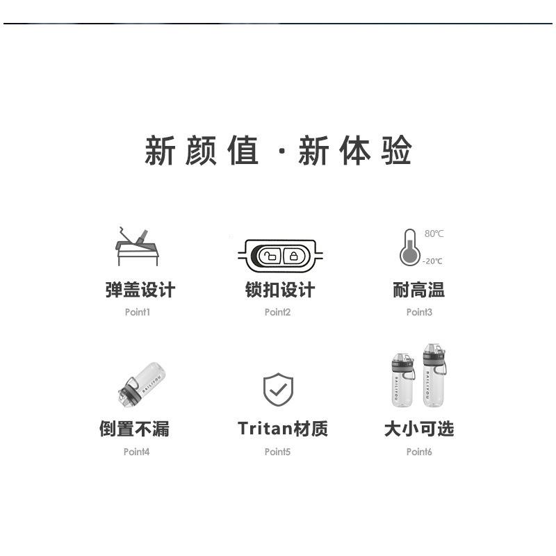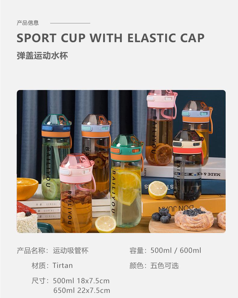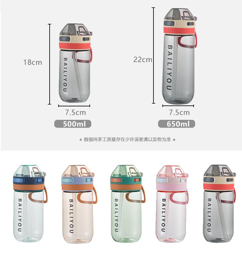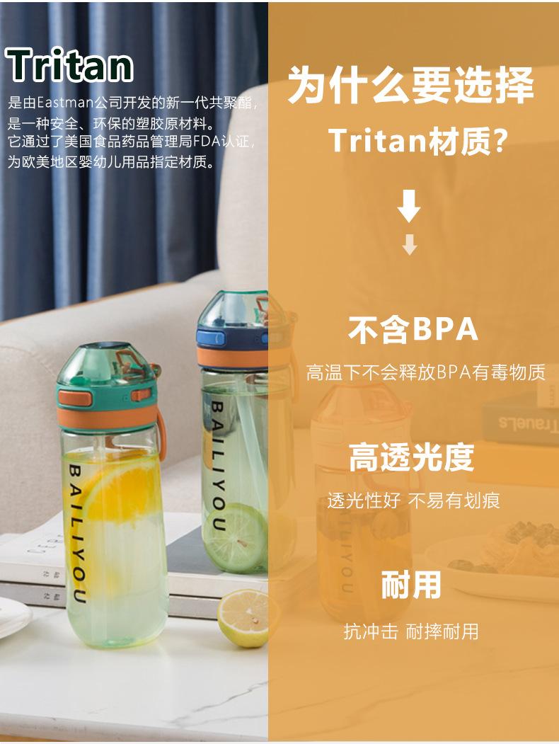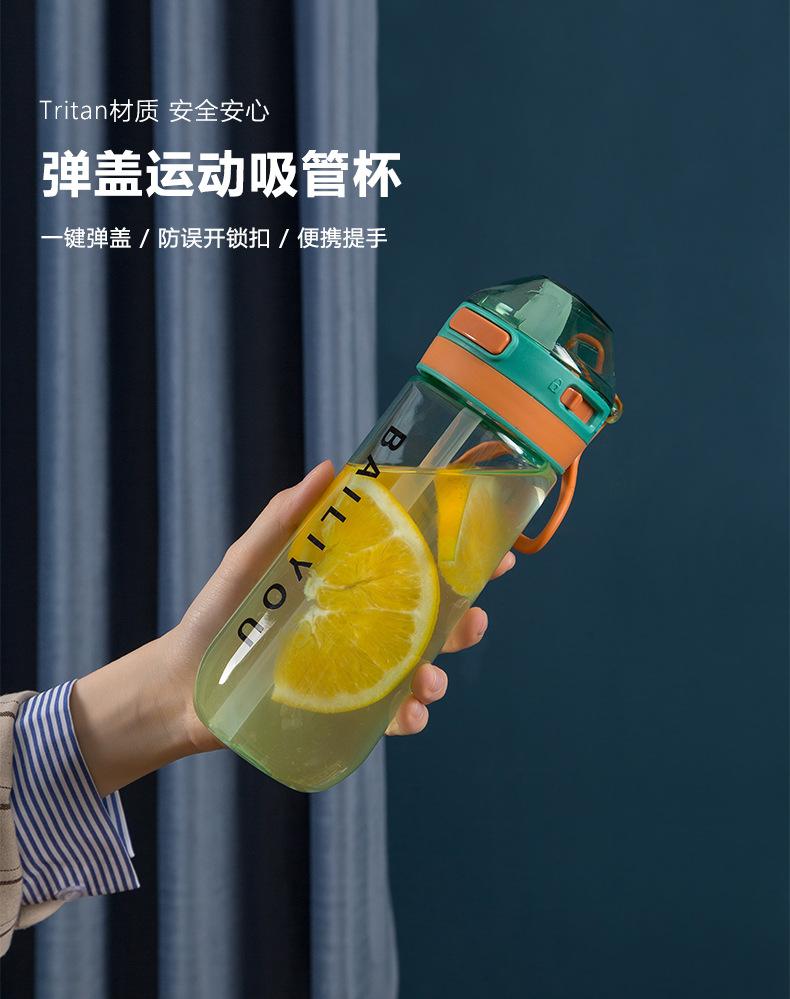 Vaso deportivo de agua de gran capacidad tritán portátil anticaída botella de plástico hombres y mujeres verano estudiante vaso sencillo práctico