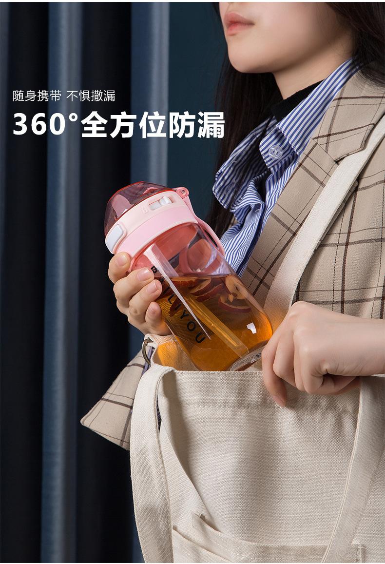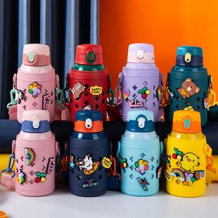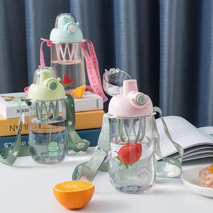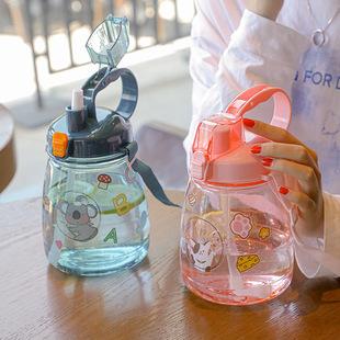 Lindo vaso de agua de gran capacidad con pajita, botella con correa cruzada para niña, hervidor de agua, verano, exterior, portátil, caricatura, vaso gordito