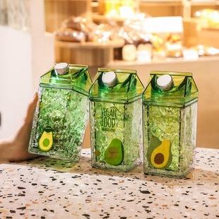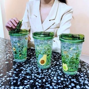 Creativa funda de taza con boca de botella oculta, taza de hielo de aguacate, taza fría para bebidas de gel de doble capa, taza para beber directa coreana de dibujos animados