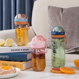 Nuevo vaso para beber directo con popote, vaso de doble pared, vaso de plástico tritán, creativo, portátil, sencillo, para agua, leche, café