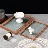 Bandeja de vidrio con relieve Begonia, color nogal, rectangular, para guardar té, adornos, taza de té, plato para aperitivos de frutas