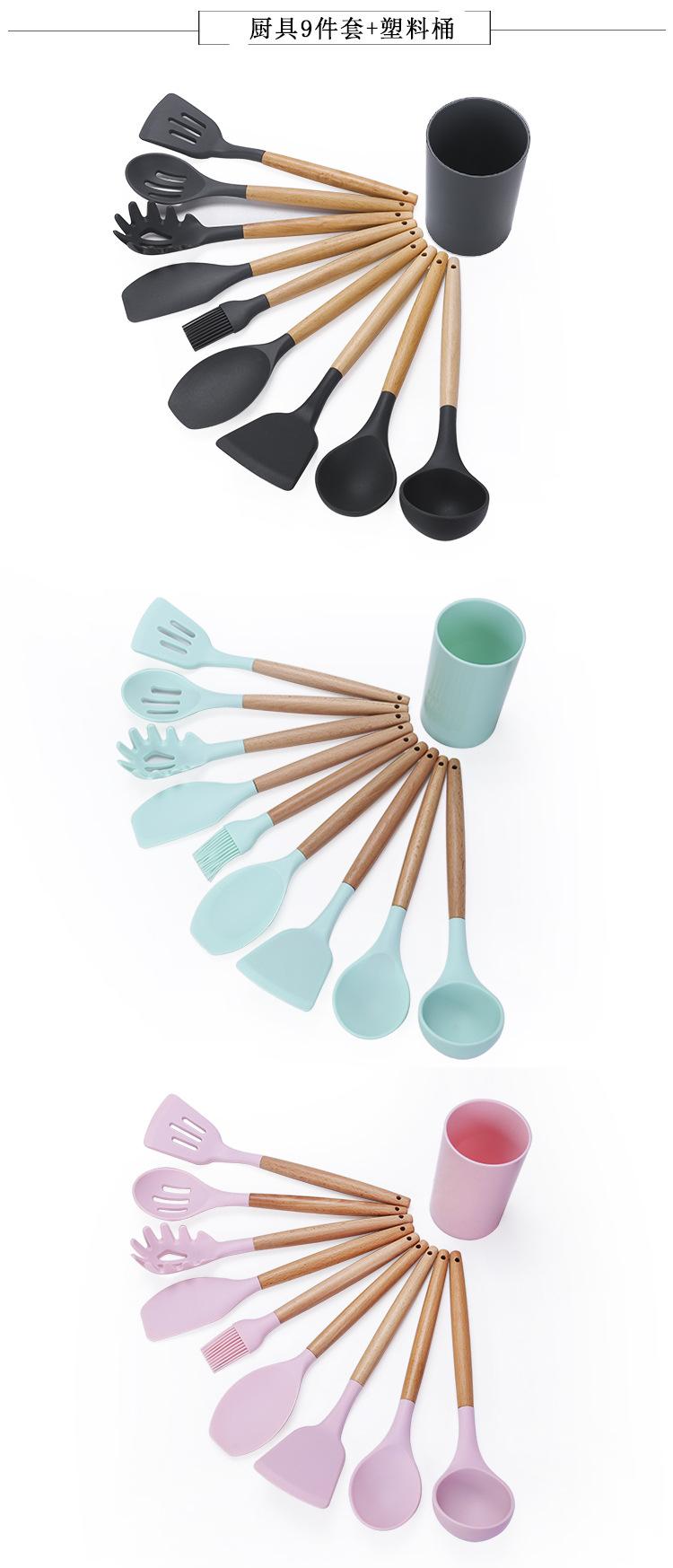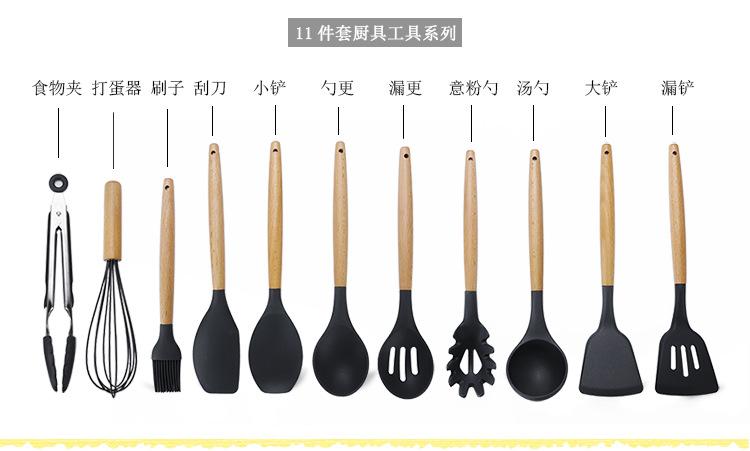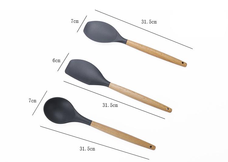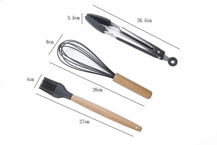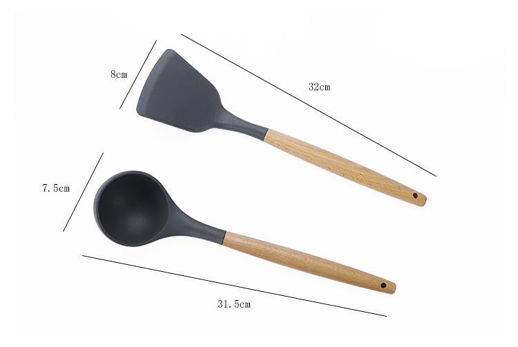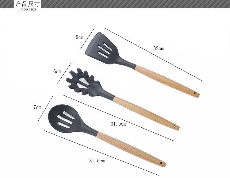 Nombre del producto: Juego de utensilios de cocina de silicona con mango de madera