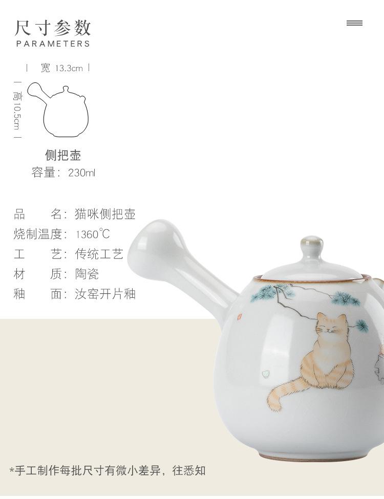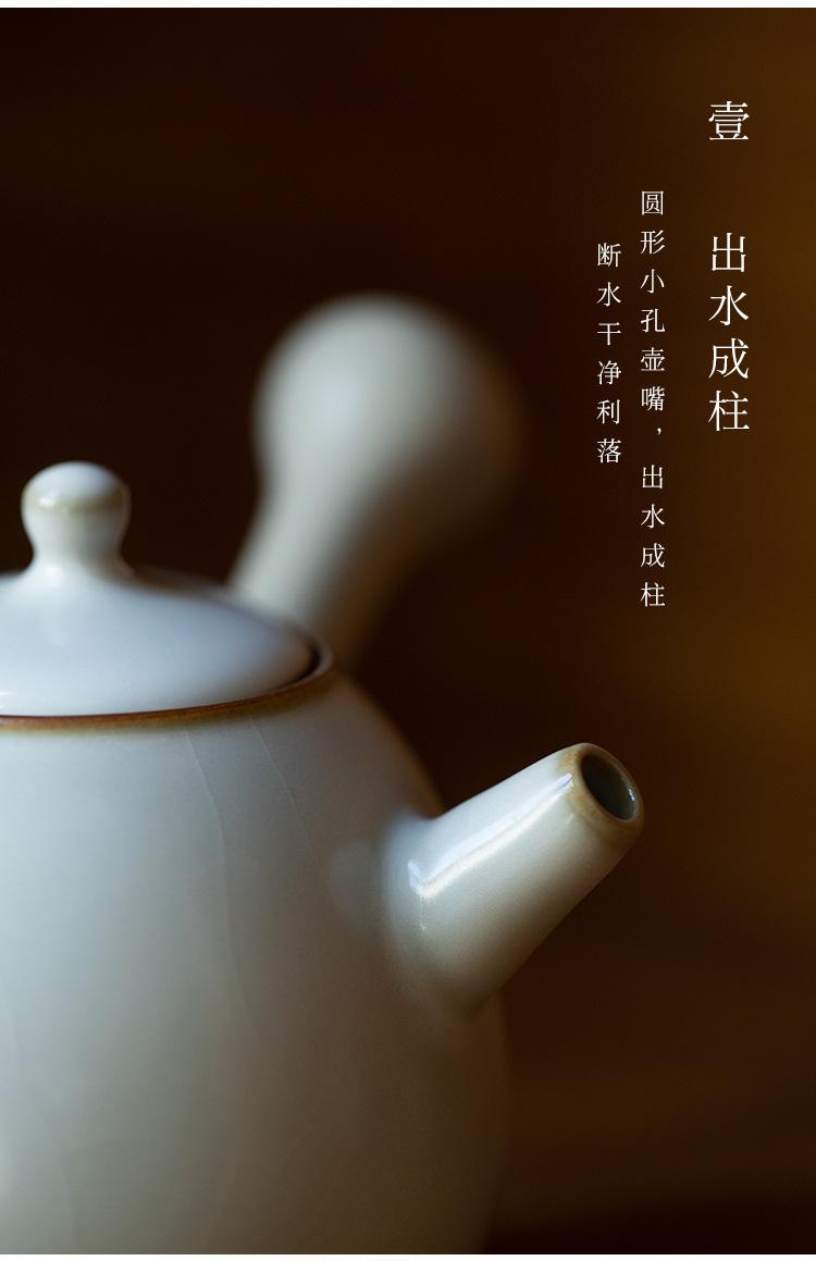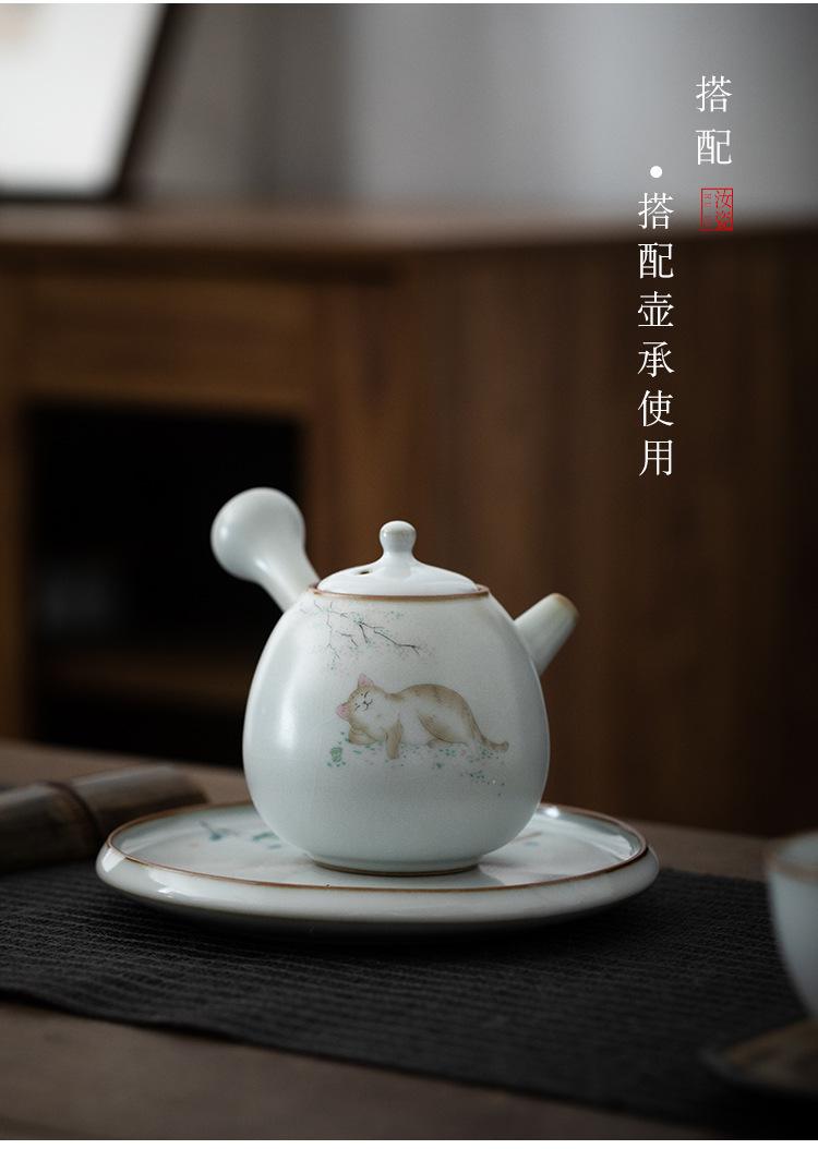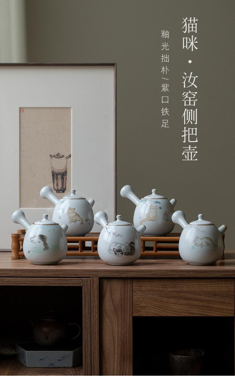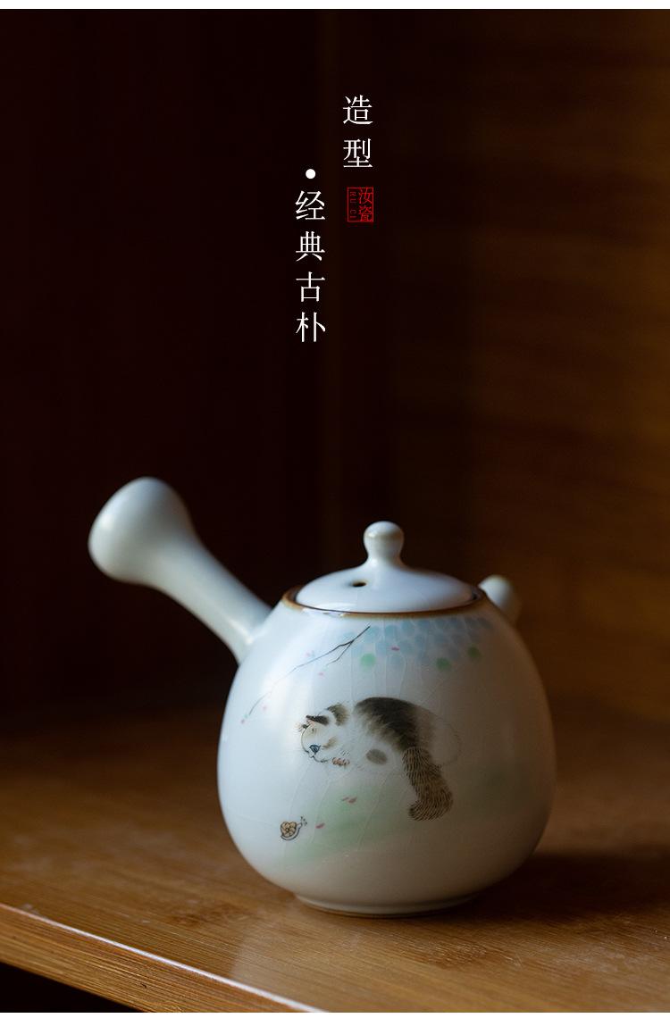 Tetera de pieza abierta Ru Kiln, juego de té de kung fu, tetera de porcelana antigua Ru de la serie Cat con asa lateral, tetera de horno Ru blanca lunar