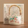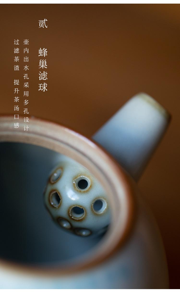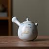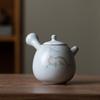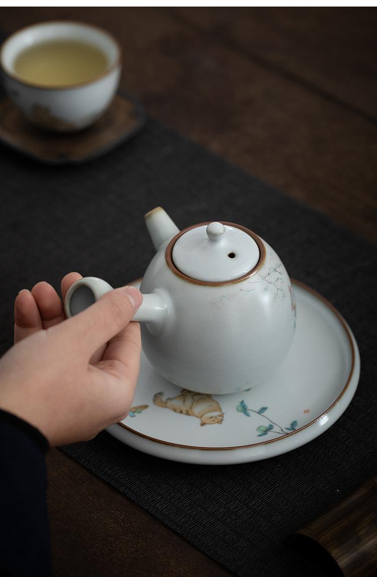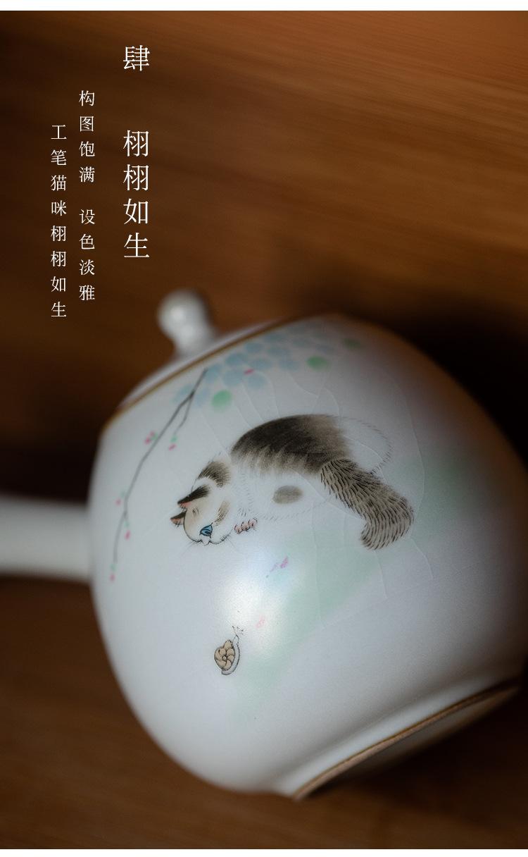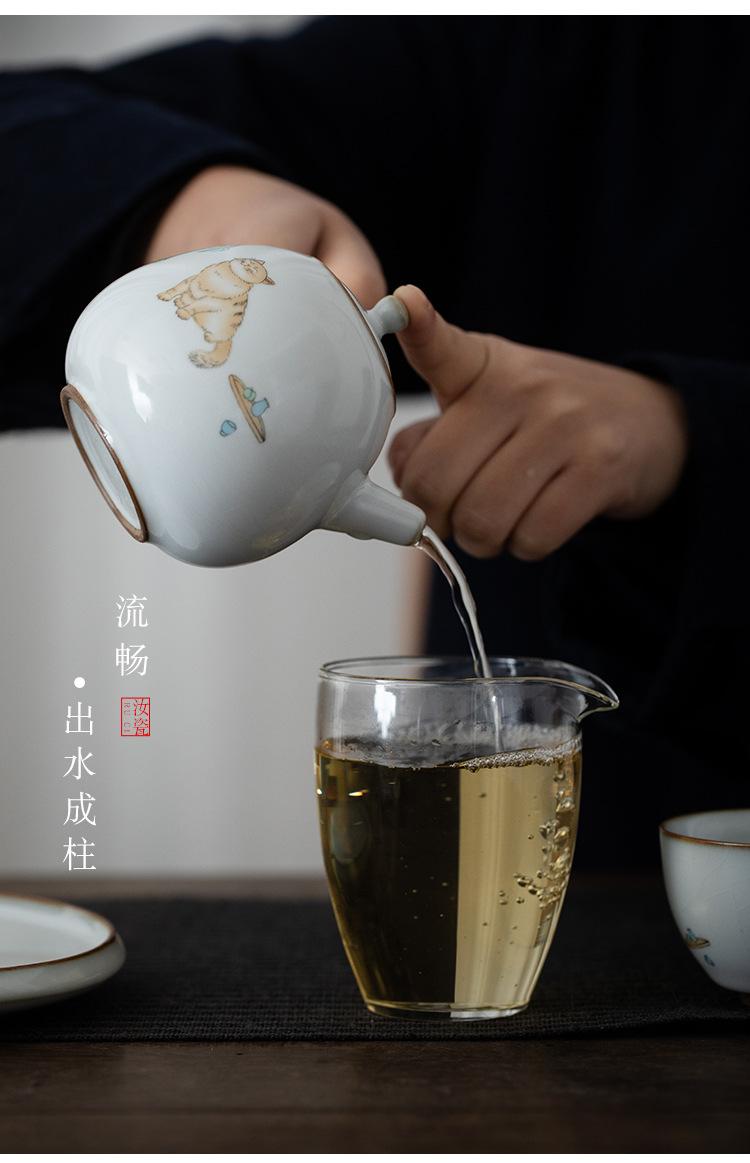 Tetera de pieza abierta Ru Kiln, juego de té de kung fu, tetera de porcelana antigua Ru de la serie Cat con asa lateral, tetera de horno Ru blanca lunar