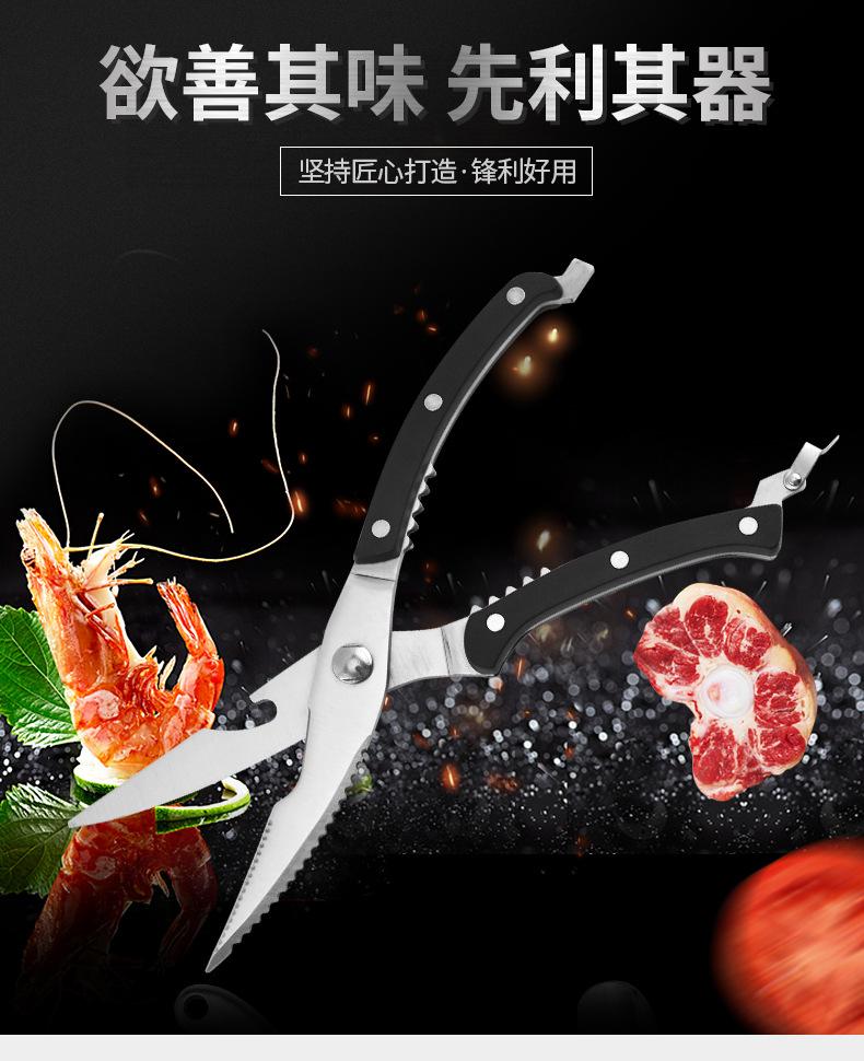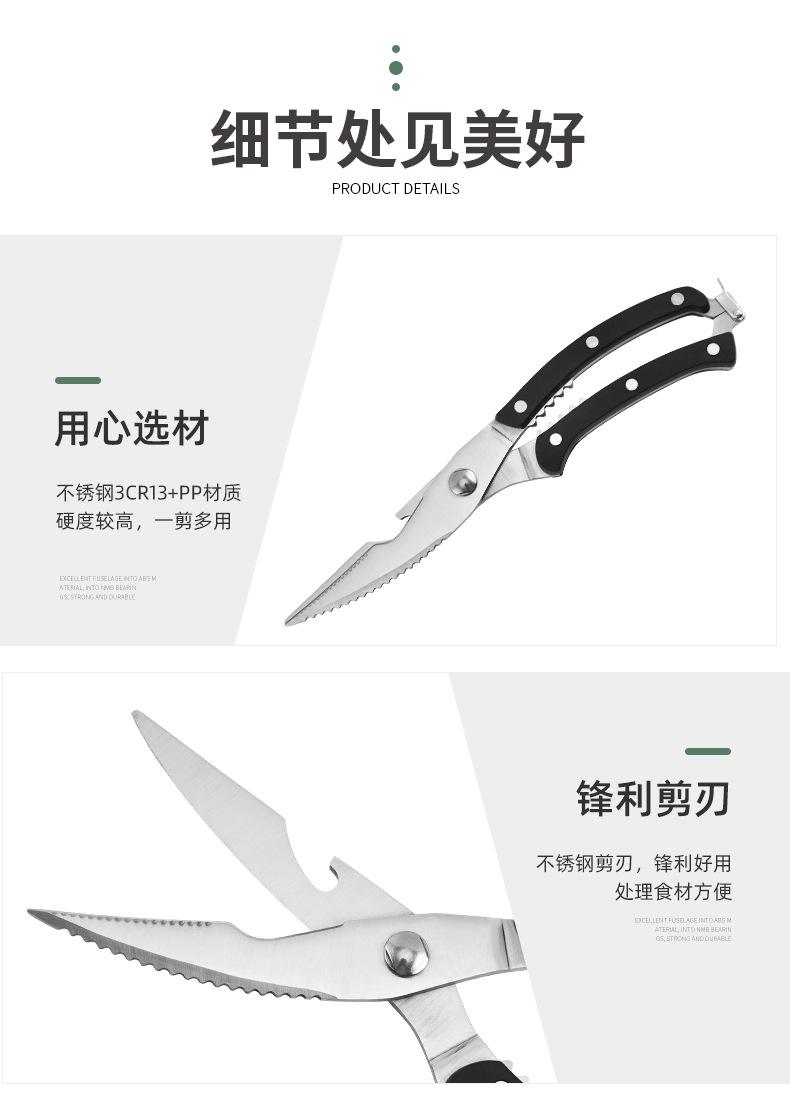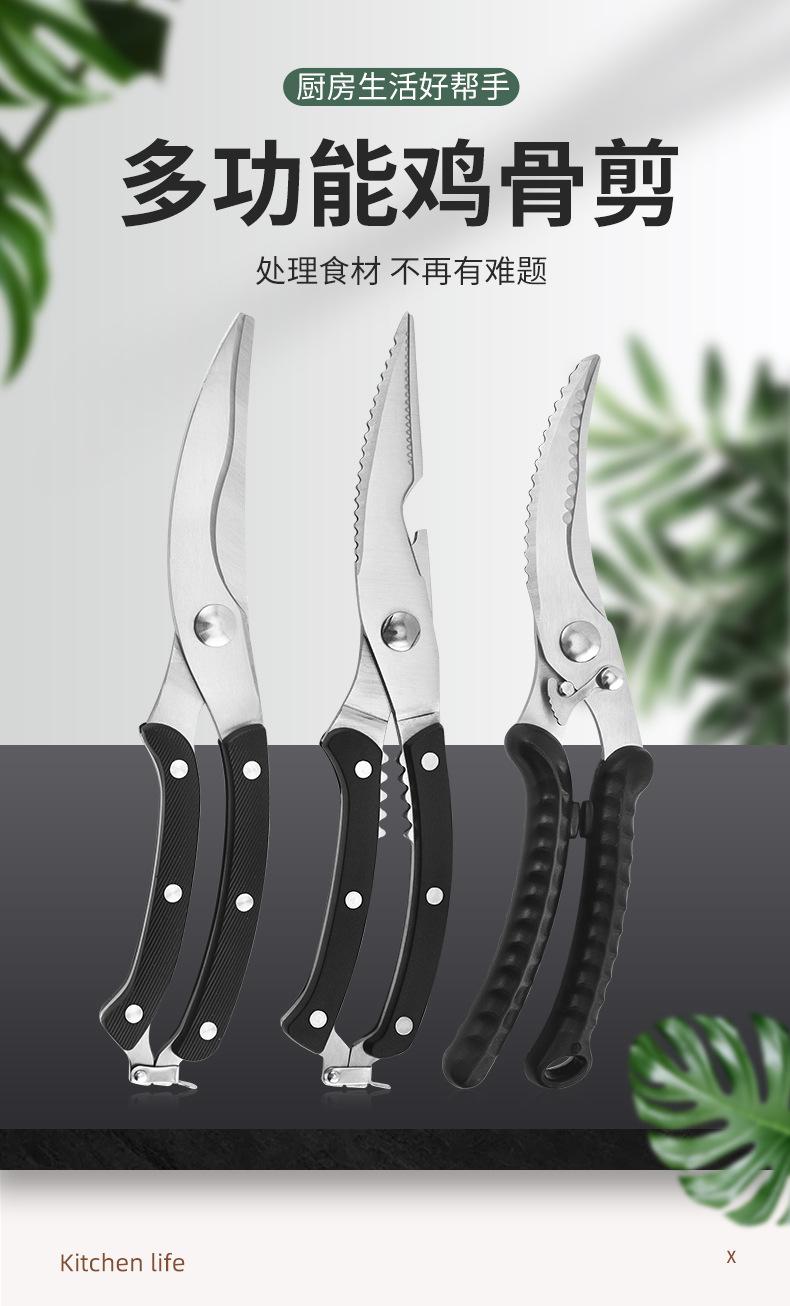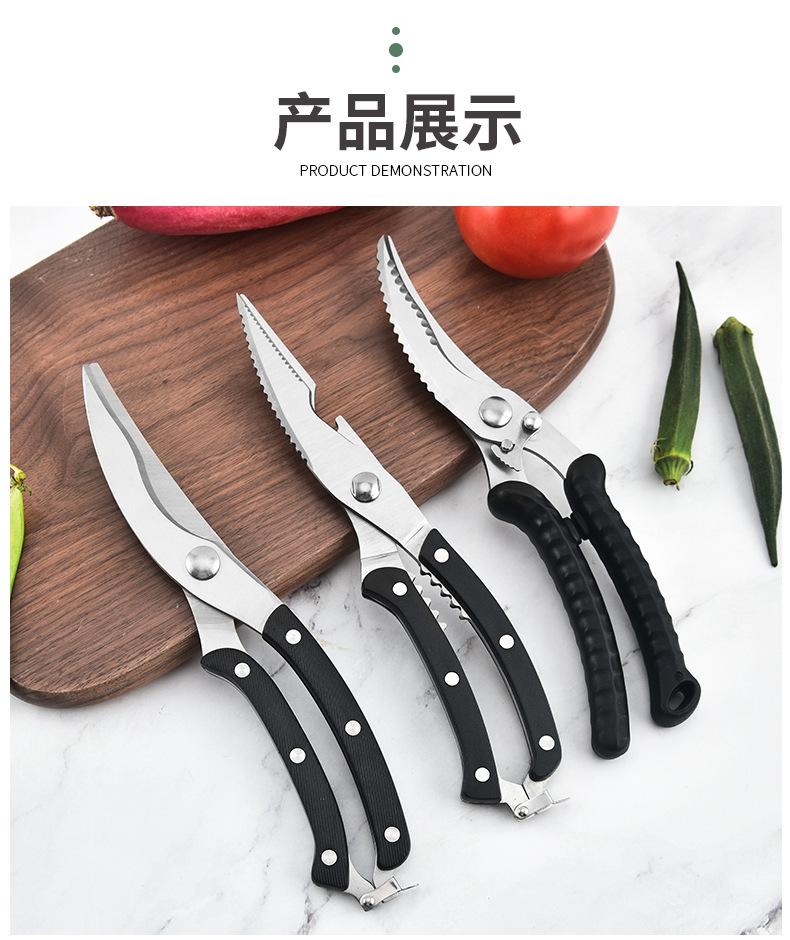 Tijeras resistentes para hueso de pollo al por mayor de fábrica, tijeras de cocina de acero inoxidable, tijeras de cocina, tijeras de comida, tijeras multifuncionales para el hogar y exteriores.