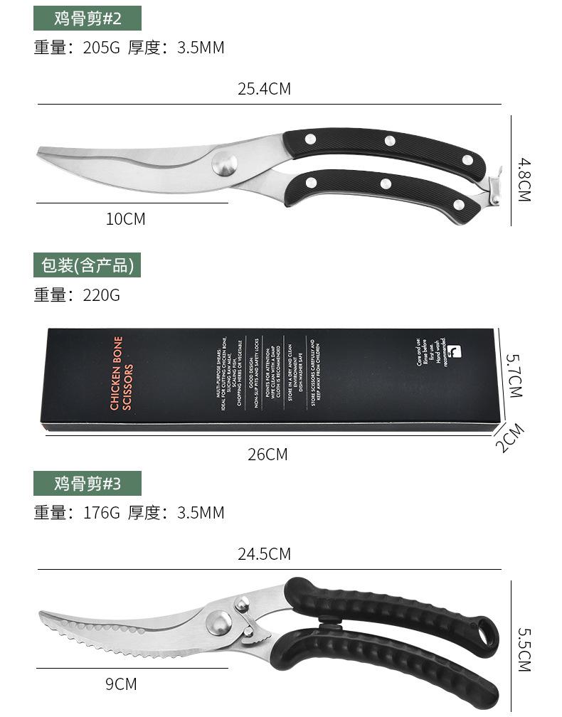 B: C10-08 kitchen chicken bone scissors-bulk, B: C10-08 kitchen chicken bone scissors-boxed, C: C10-06C color ...