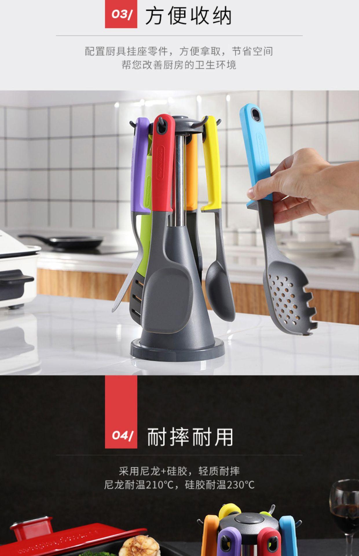 Juego de 7 piezas de utensilios de cocina con sartén antiadherente multifuncional, espátula especial resistente a altas temperaturas, cuchara, cuchara, pinza para carne, cepillo