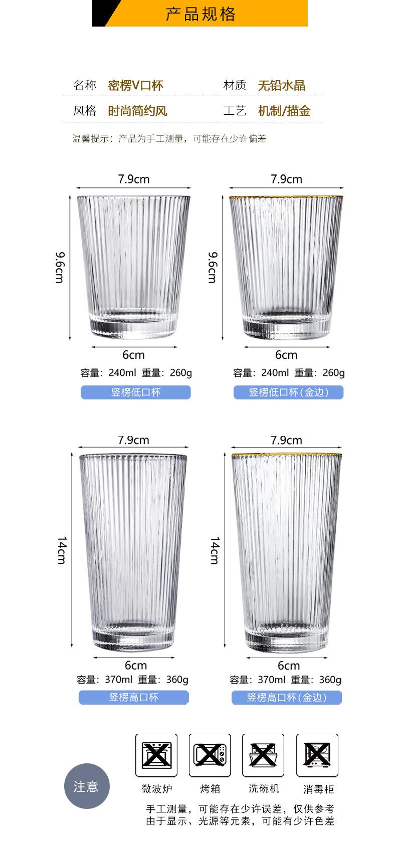 Esta copa alta de canalé vertical viene en cajas de 48 piezas por caja, 6 piezas por caja, tamaño de la caja exterior: 46.3x32.3x30.6cm, peso bruto: 19.3kg; la copa baja de canalé vertical viene en cajas de 72 piezas por caja, 6 piezas por caja, tamaño de la caja exterior: 45.8x31.8x32.5cm, peso bruto: 20.8kg, ¡la venta al por mayor por caja completa es más favorable! El flete del sistema es inexacto, ¡por favor contacte al servicio al cliente para cambiar el precio después de tomar la foto!