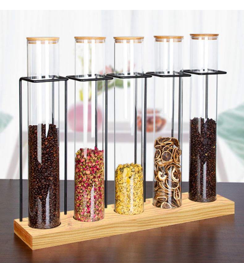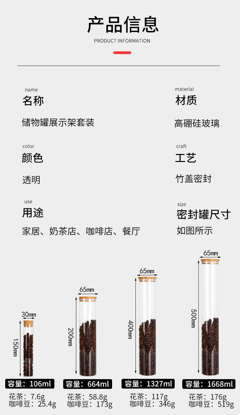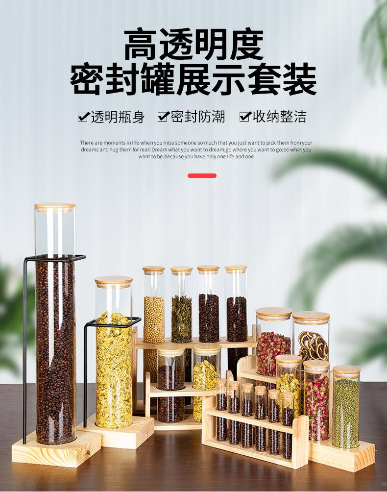 Tienda de té con leche té tarro sellado soporte de exhibición decoración barra mostrador tarro de almacenamiento de vidrio para frutos secos soporte para granos de café