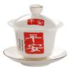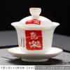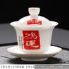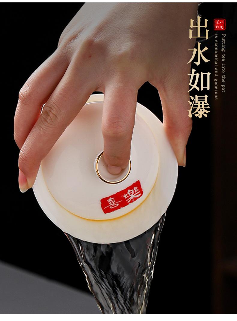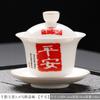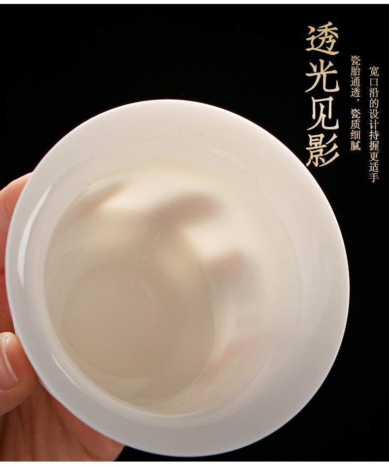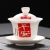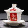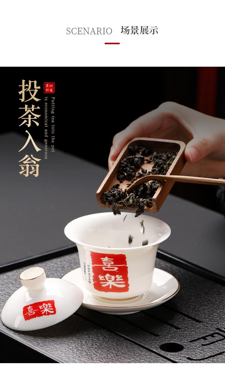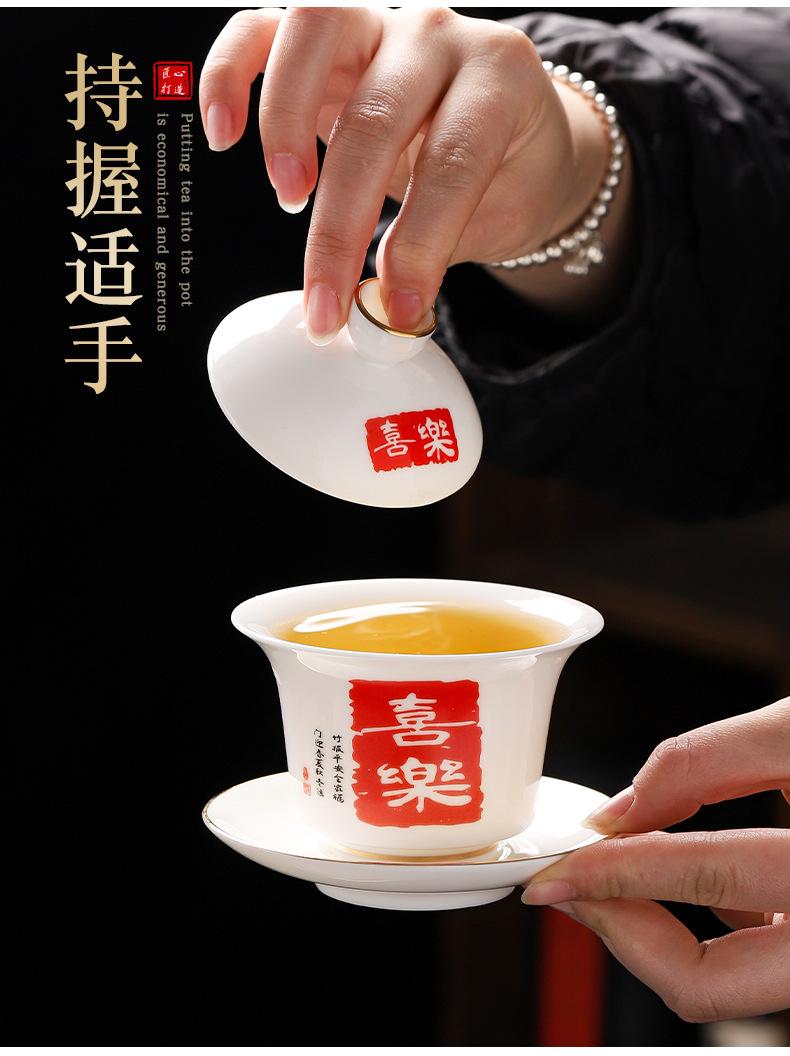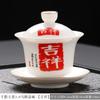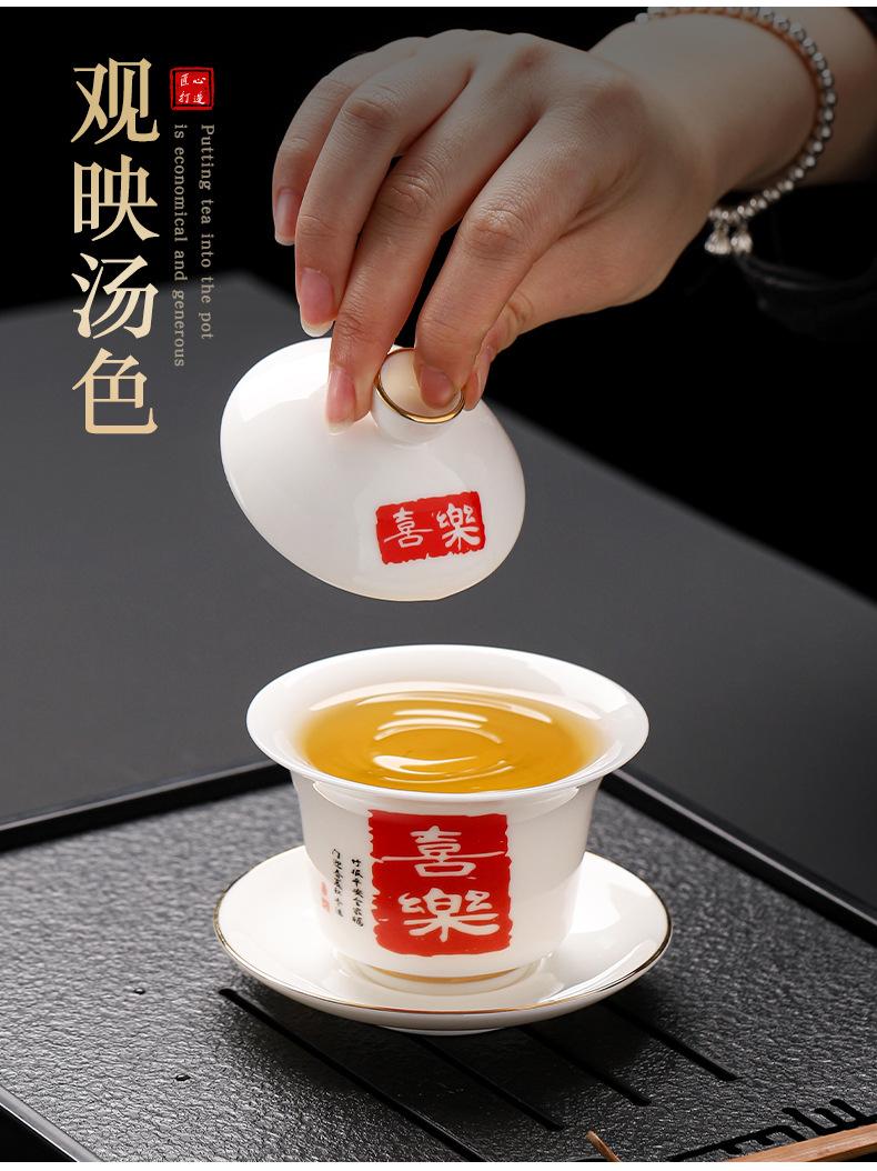 Cuenco de jade con grasa de oveja, cuenco de porcelana blanca con pintura dorada y tres tapas de Cai, juego de té de kung fu, suministros para el salón de té, juego de té para el hogar, cuenco de té
