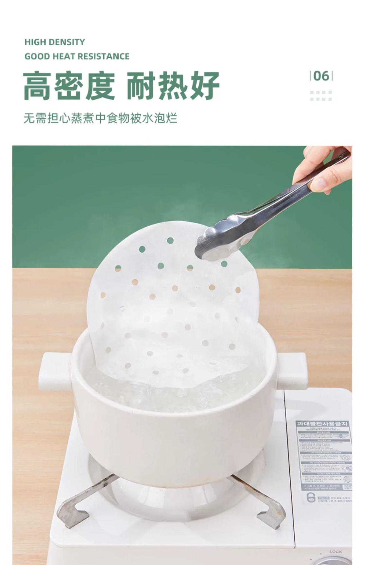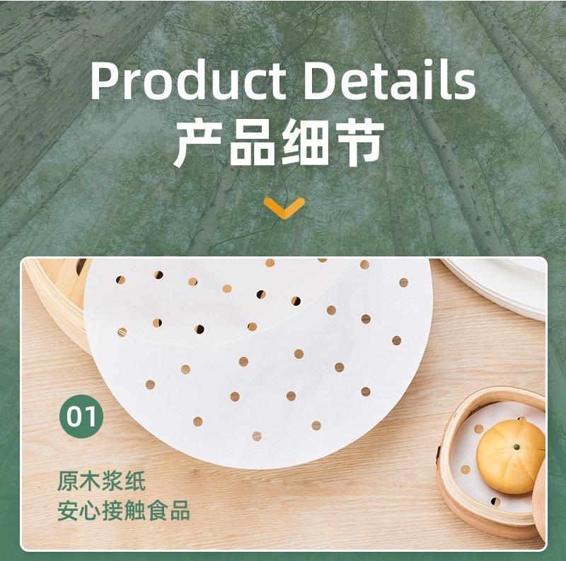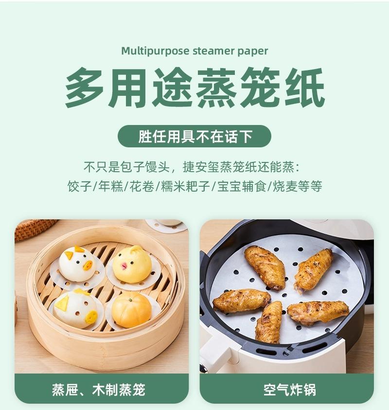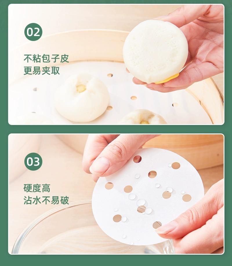Papel para vaporera antiadherente de grado alimenticio para uso doméstico, desechable, paño para vaporera, almohadilla para pan al vapor, papel de aceite, bollos al vapor, almohadilla para vaporera