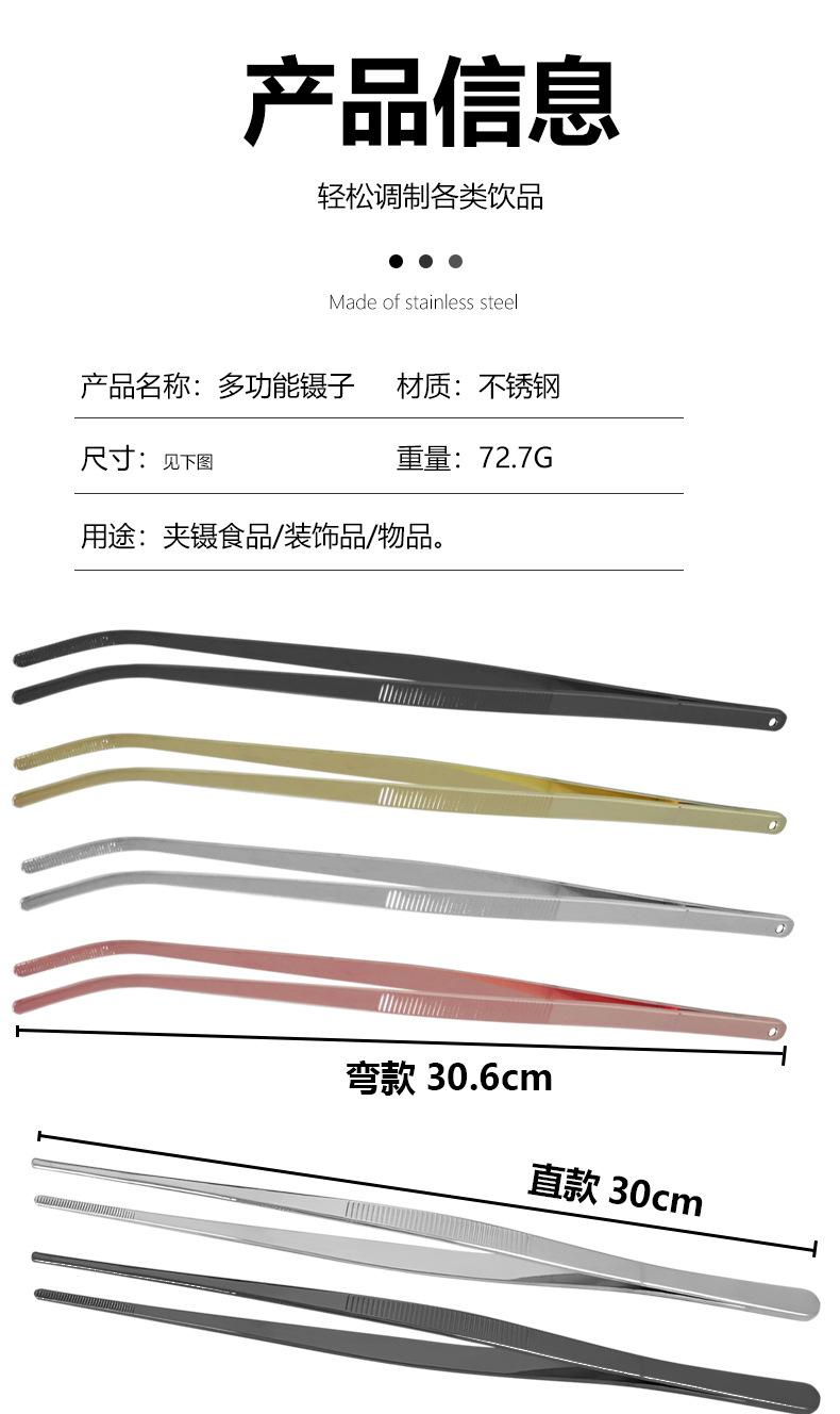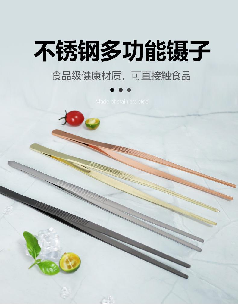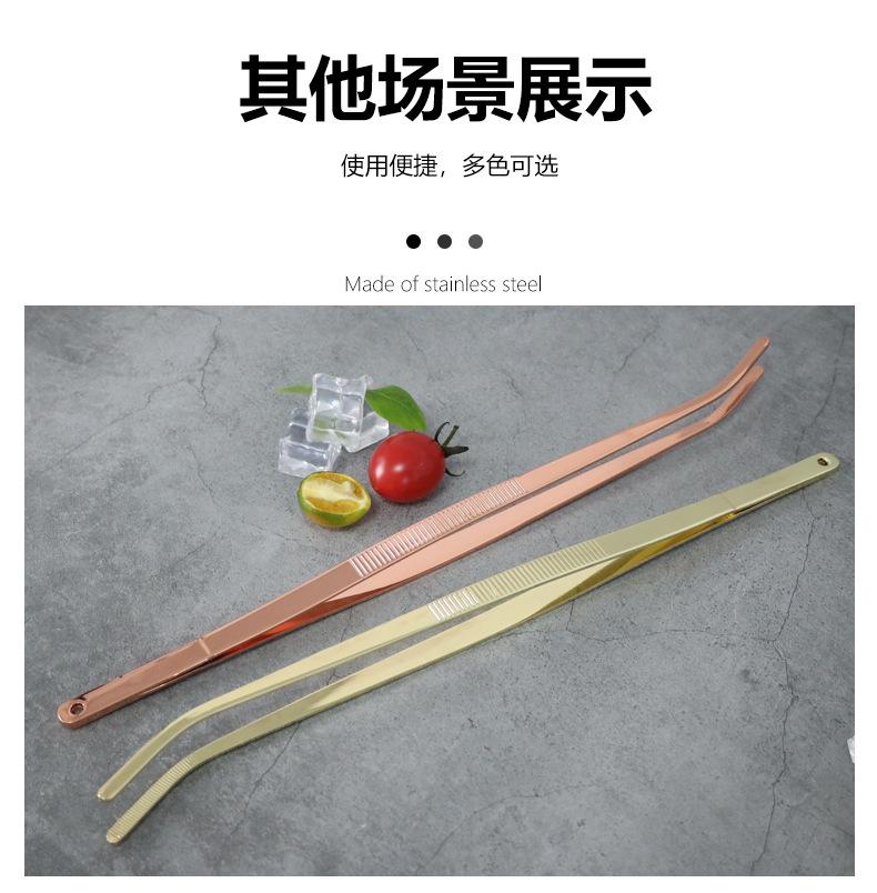 Pinzas decorativas para cóctel de acero inoxidable 304, plato oscilante, pinza para alimentos, pinza para alimentos para snacks de cocina, 30 cm recta codo