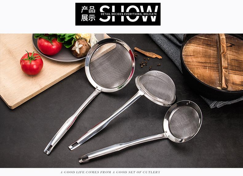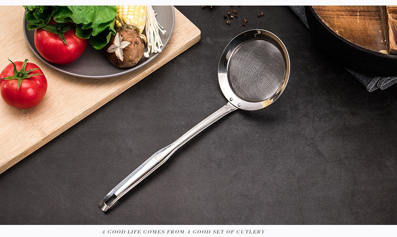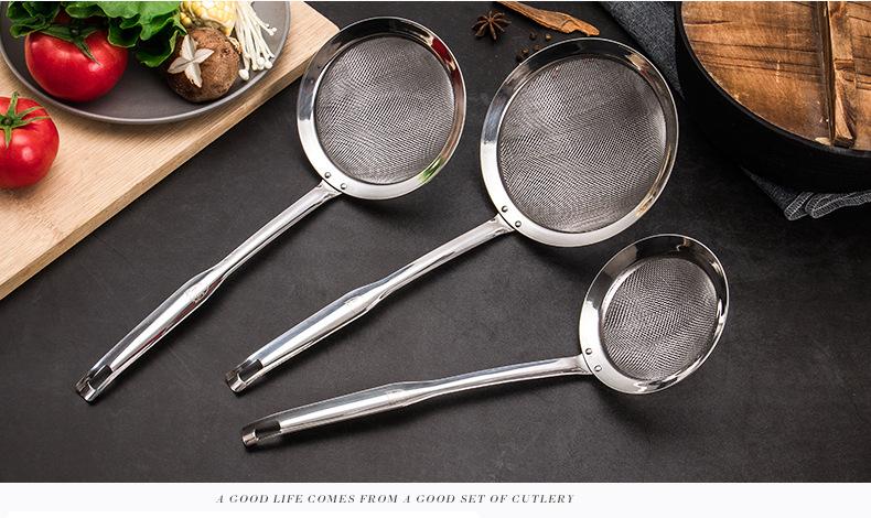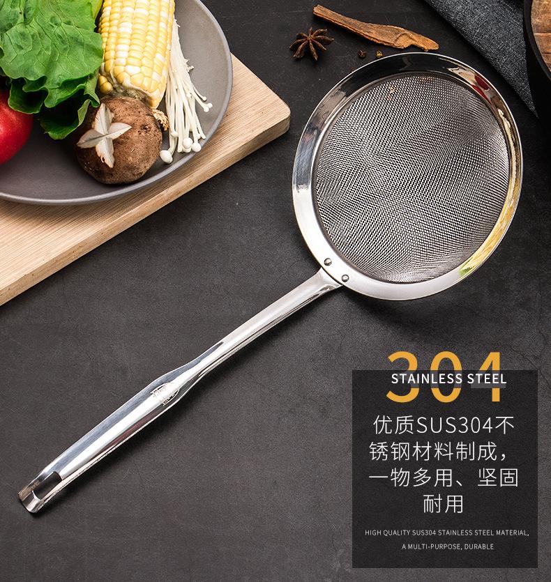 Colador de malla de acero inoxidable 304 multifuncional para pesca con aceite, con mango largo, para cocina, hogar, venta al por mayor