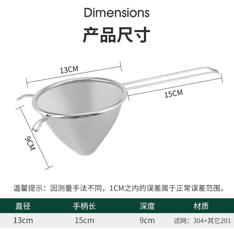 Colador de leche de soja de acero inoxidable, filtro de jugo de cono, red ultrafina, embudo de cono denso, filtro de escoria, cocina, hogar
