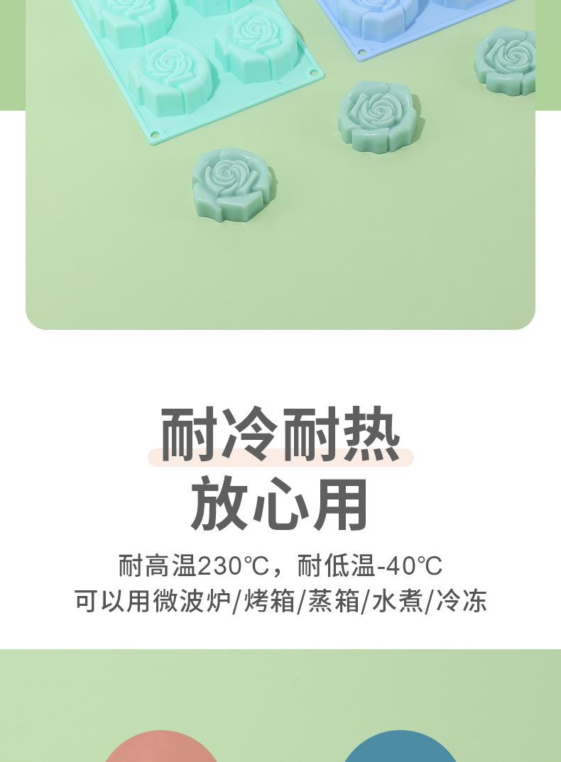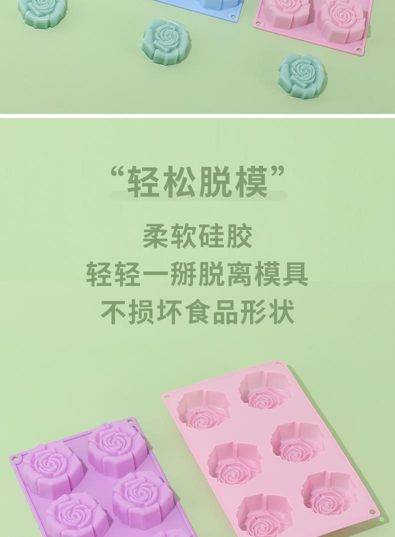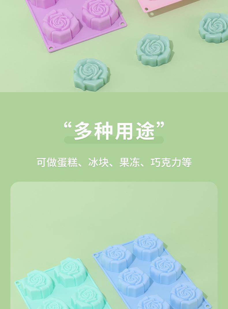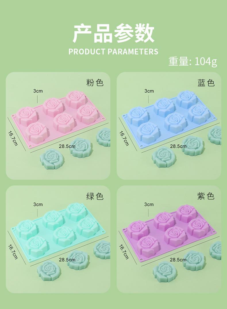 Molde de silicona para pastel, suministro directo de fábrica transfronterizo, molde tridimensional de gelatina de pudín de rosas de 6 agujeros, molde de jabón hecho a mano DIY