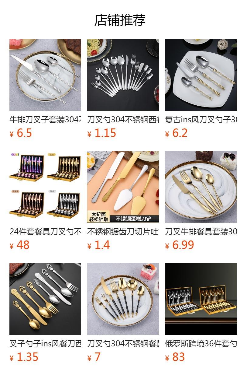 Fork, spoon, round spoon, steak knife, dessert spoon, three-tooth dessert fork