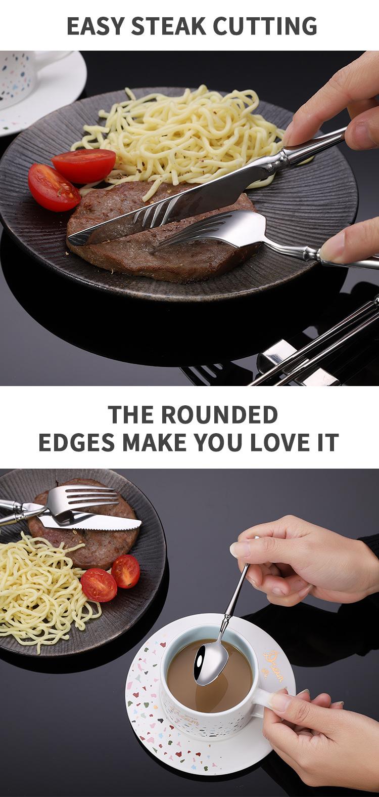 Cuchara de acero inoxidable 304, vajilla occidental, postre, té, tenedor, palillos, juego de cuchillo y tenedor para carne de cintura pequeña, cuchillo y tenedor, cuchara