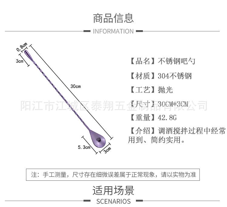 Barra de Acero Inoxidable Agitador de Cócteles Té con Leche Cuchara Agitadora de Mango Largo Palo Agitador de Café