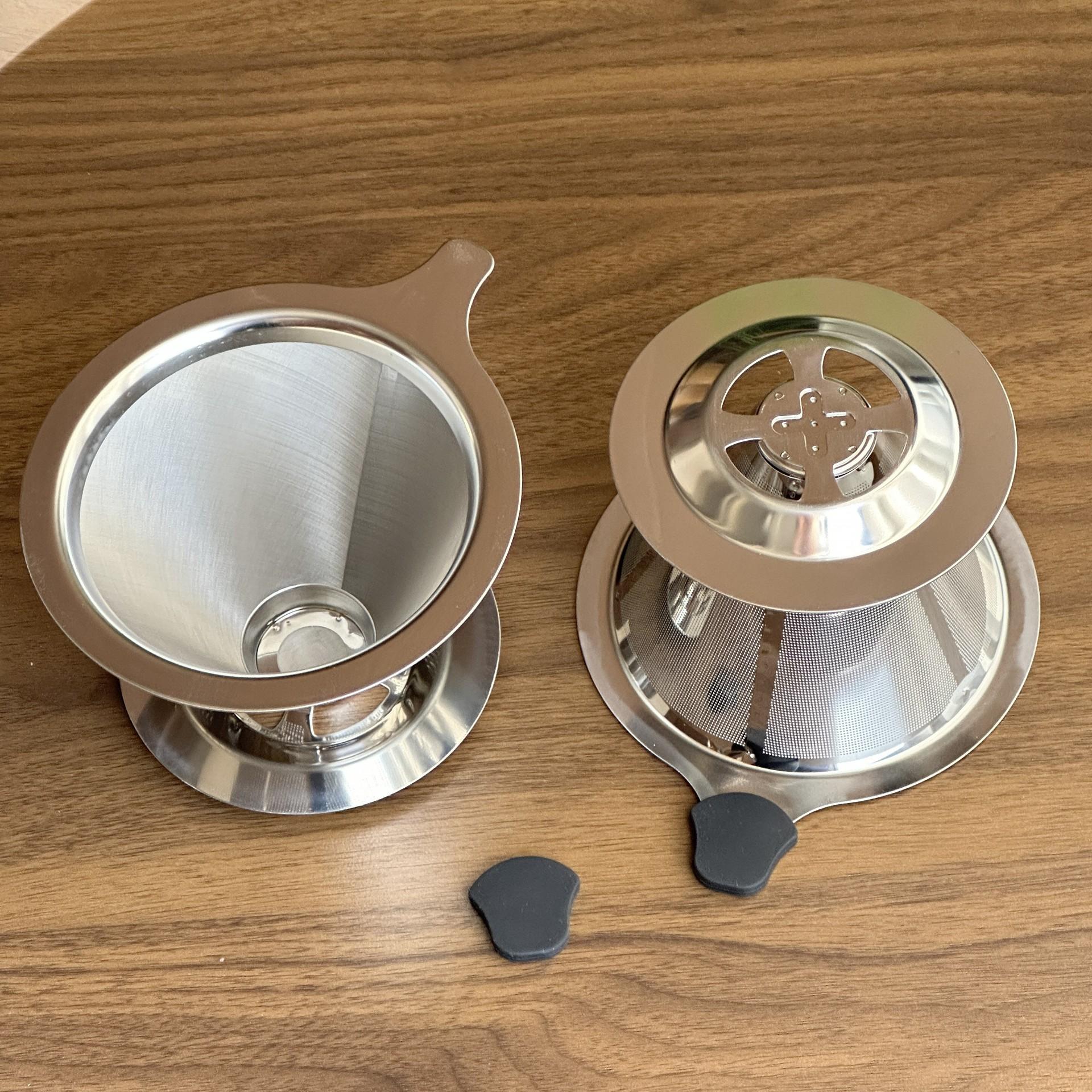 Filtro de café de acero inoxidable de doble capa, aparato para café, apto para embudo de papel sin filtro, filtro de goteo