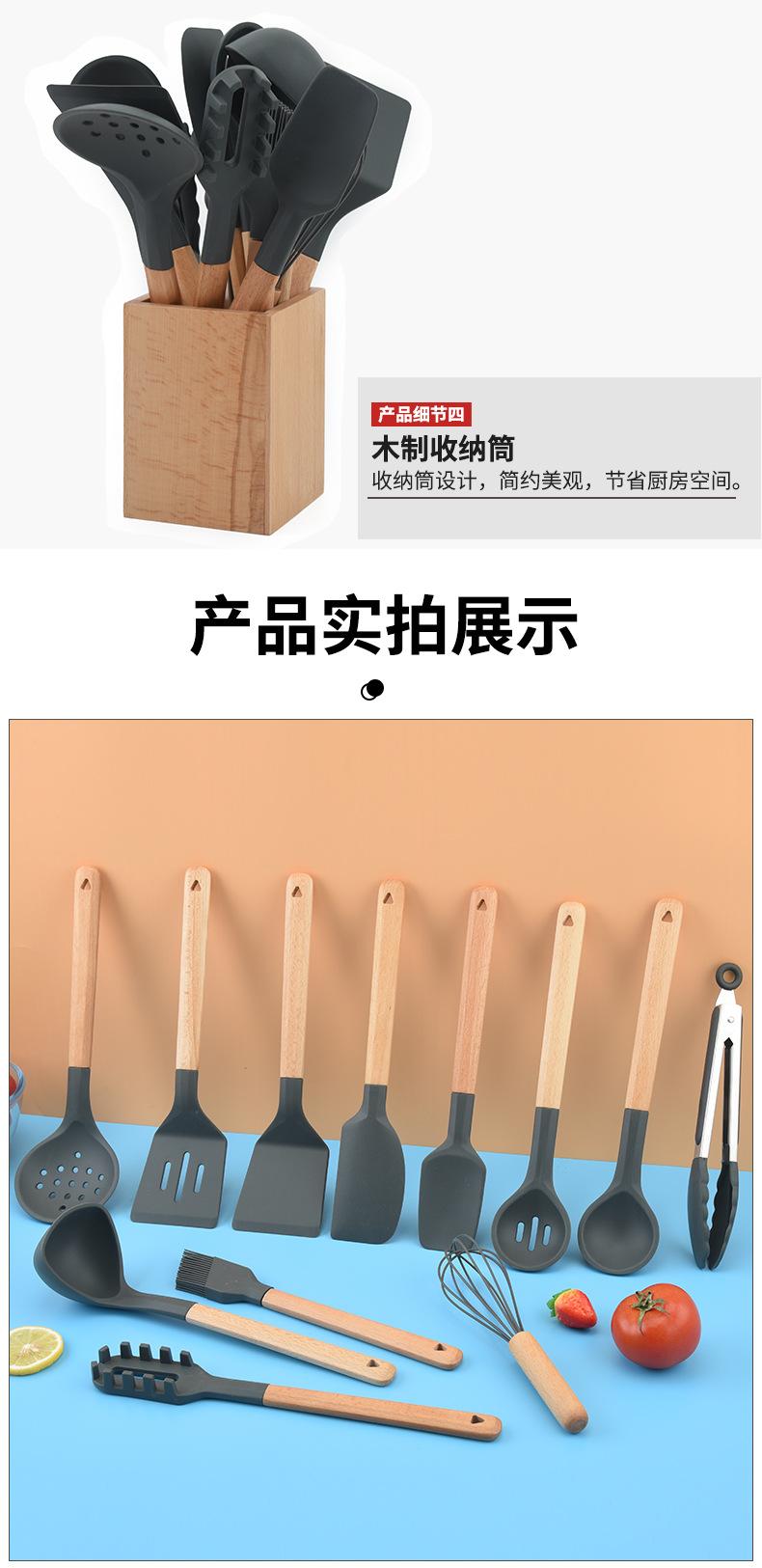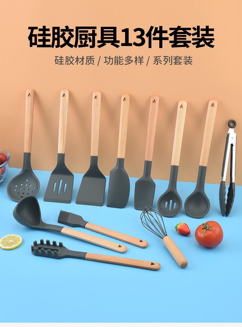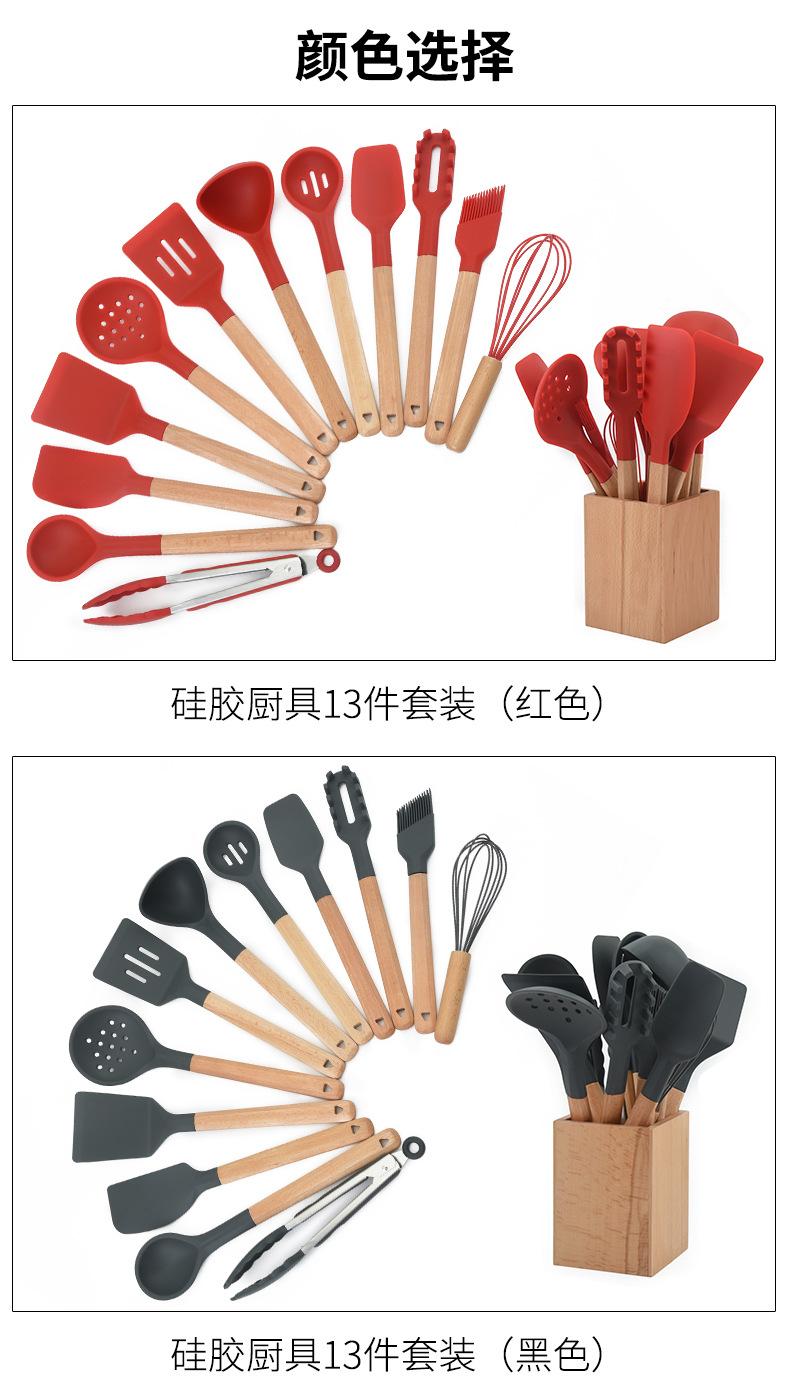 Nombre del producto: Juego de utensilios de cocina de silicona de 13 piezas con mango de madera