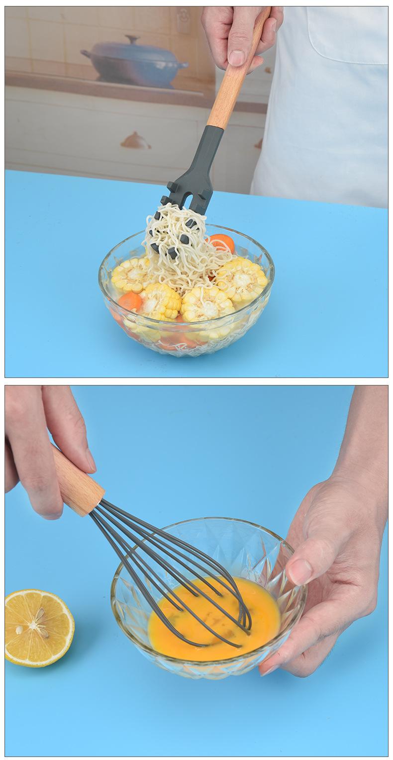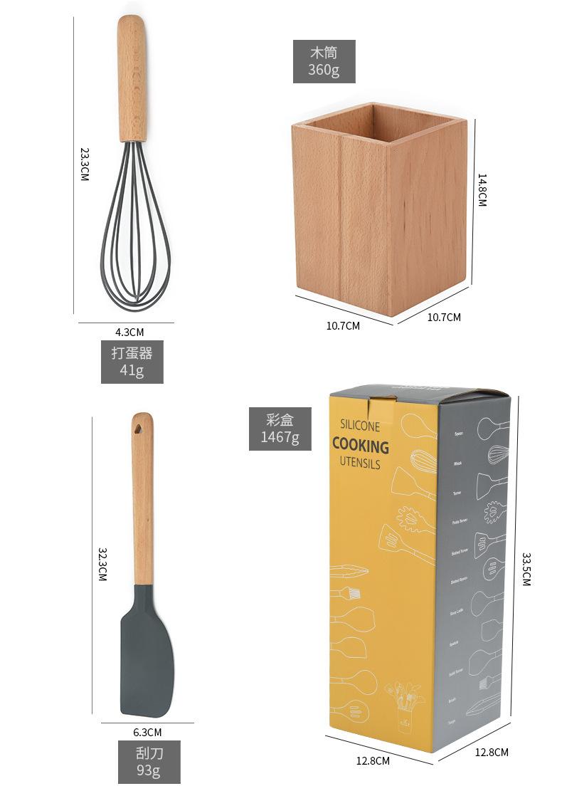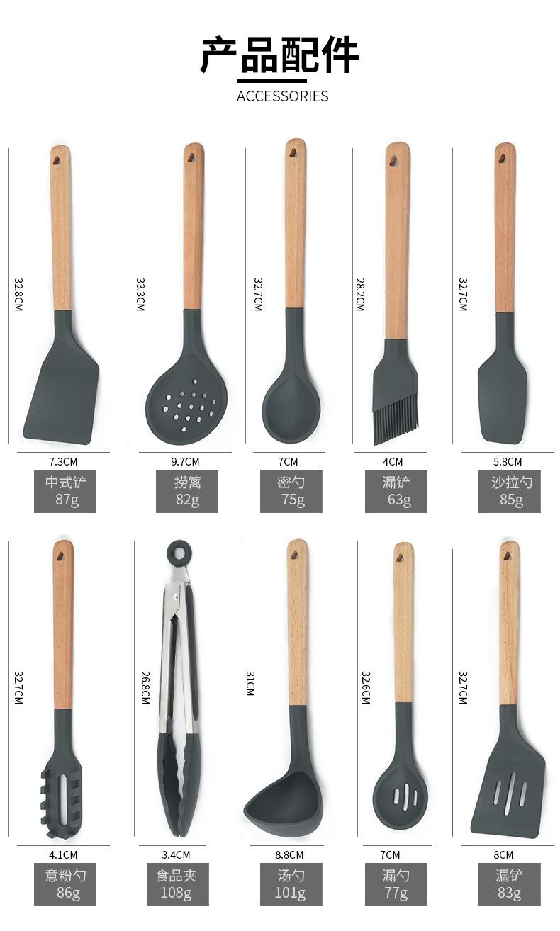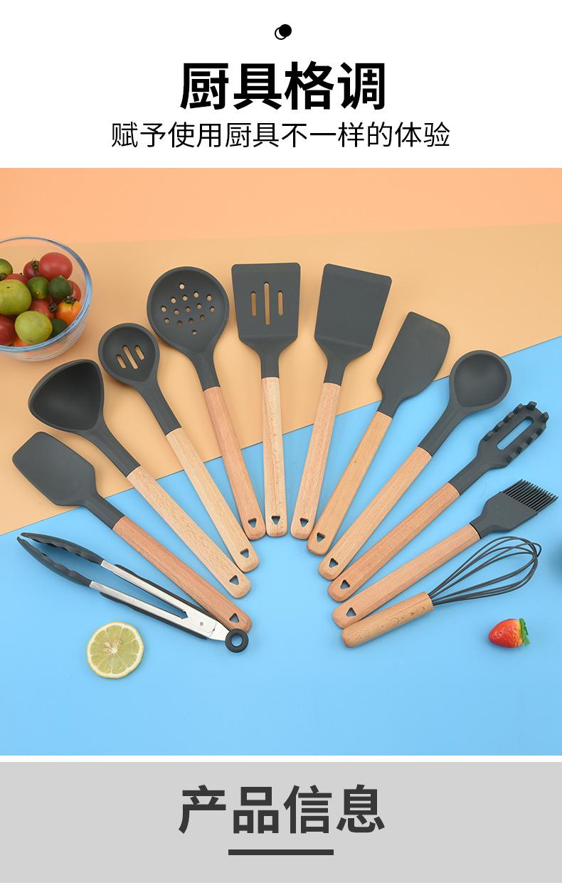 Nombre del producto: Juego de utensilios de cocina de silicona de 13 piezas con mango de madera