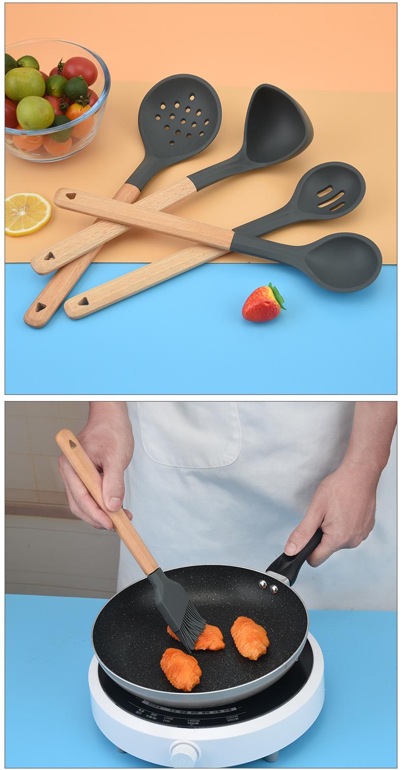 Artículo No.: Juego de utensilios de cocina de silicona de 13 piezas con mango de madera