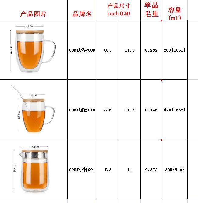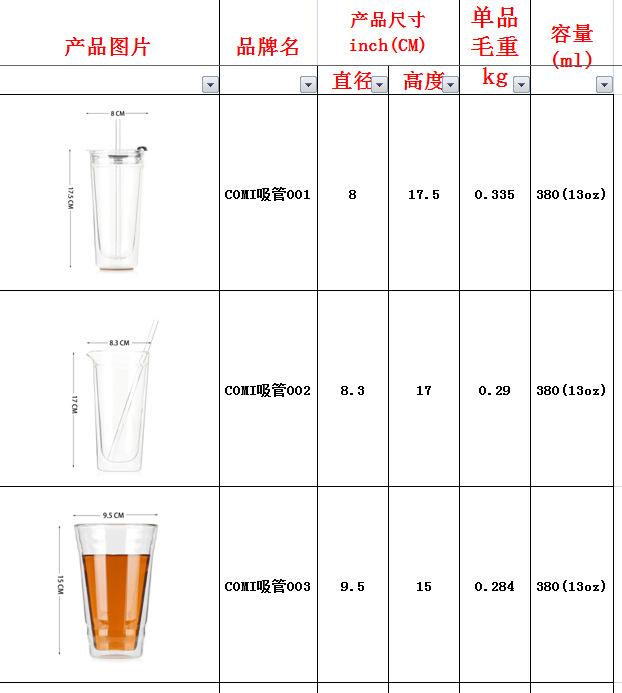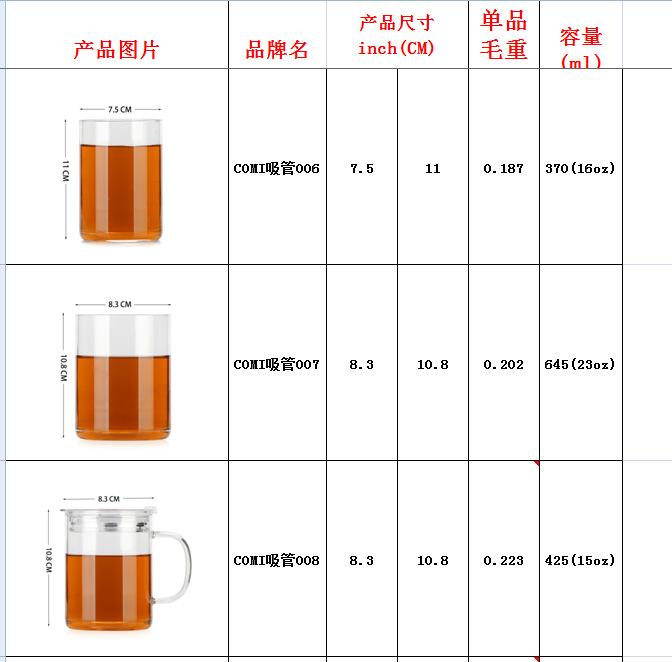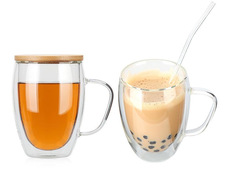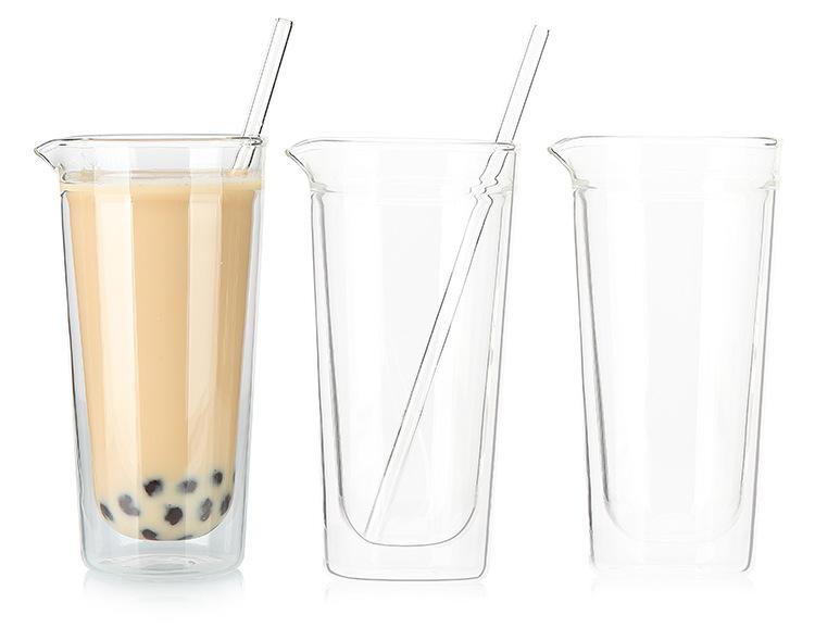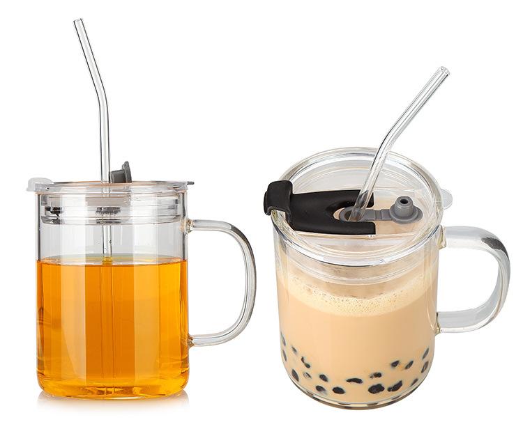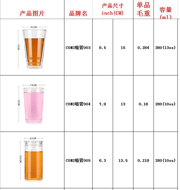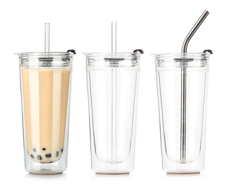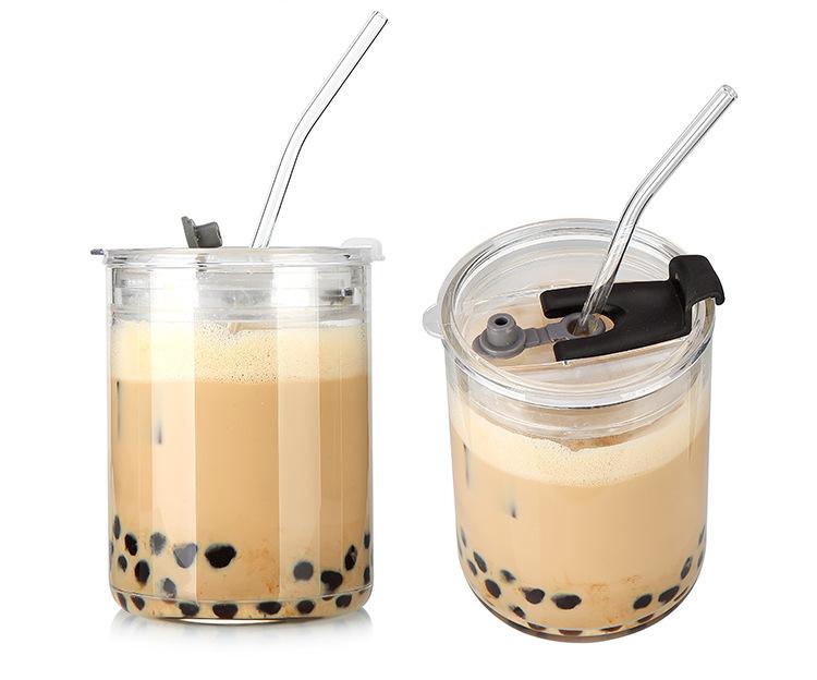 Vaso de Vidrio Comi Vaso con Popote Vaso de Vidrio de Borosilicato Alto Espesado Resistente al Calor Vaso de Vidrio de Una Capa Doble Capa Taza de Té de Vidrio con Logotipo Impreso