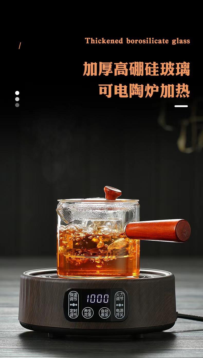 Tetera de vidrio intuitiva, resistente a altas temperaturas, tetera Xiaoqing de color naranja, tetera eléctrica de cerámica, tetera con separación de agua, tetera intuitiva lateral