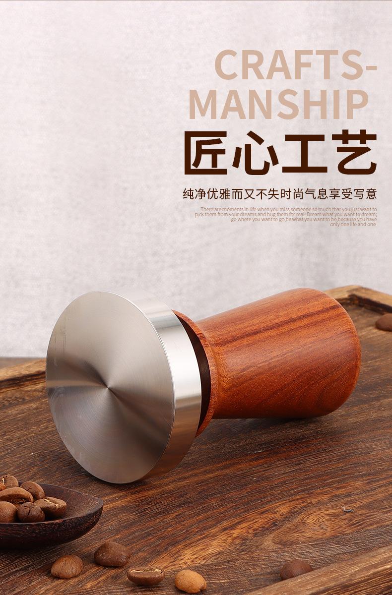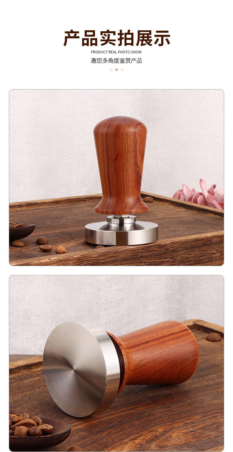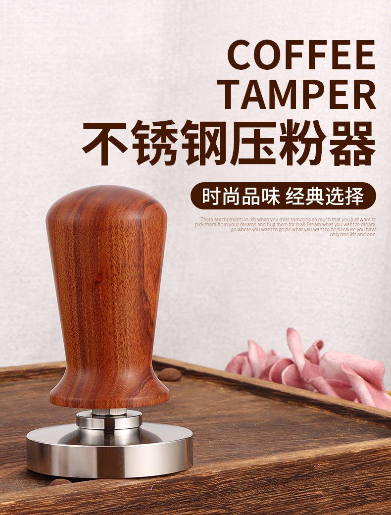 Prensa de café en polvo con mango de madera y martillo elástico, de acero inoxidable, con ajuste constante y presión sólida, para café en polvo.