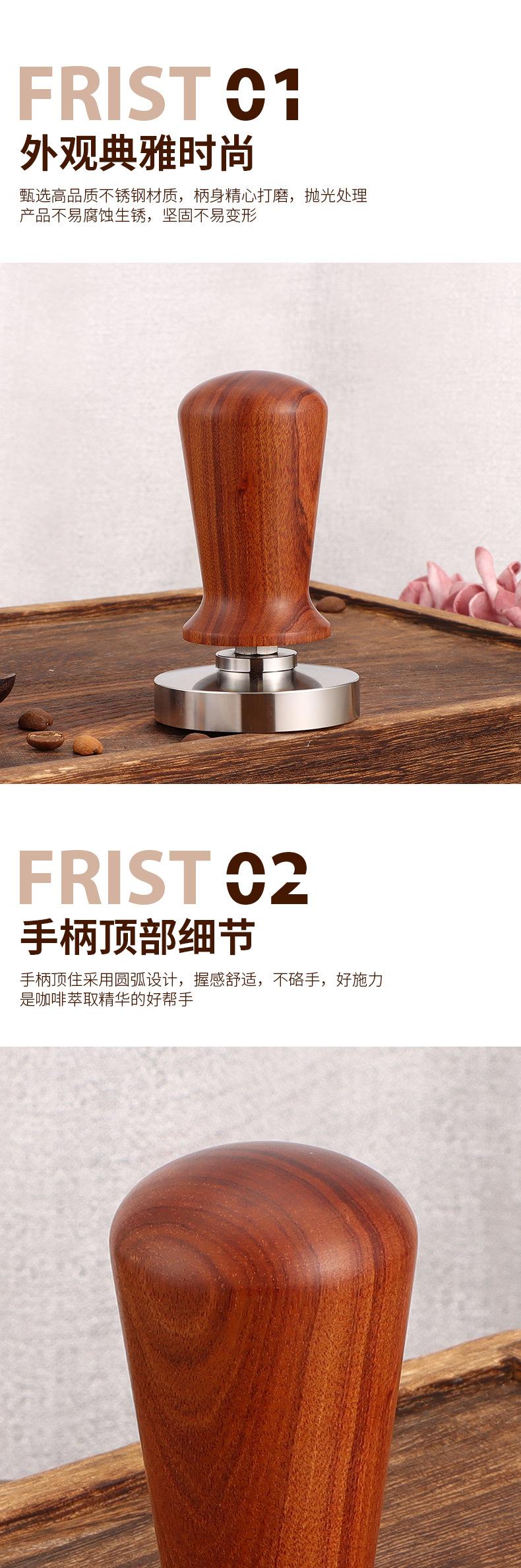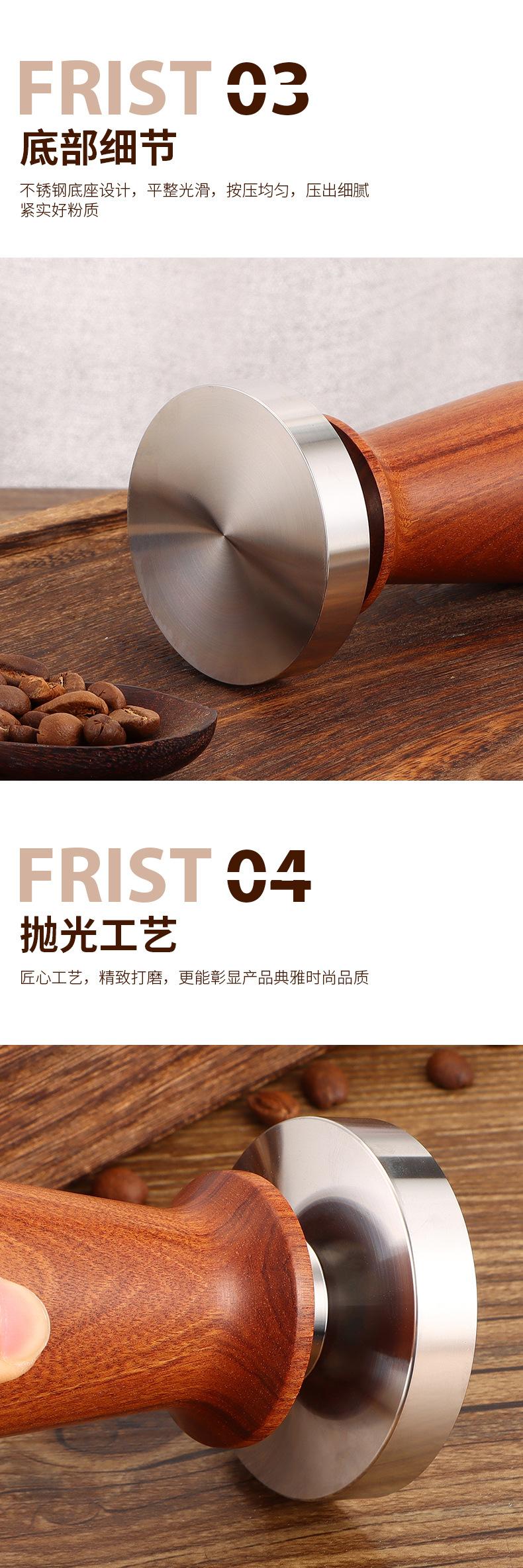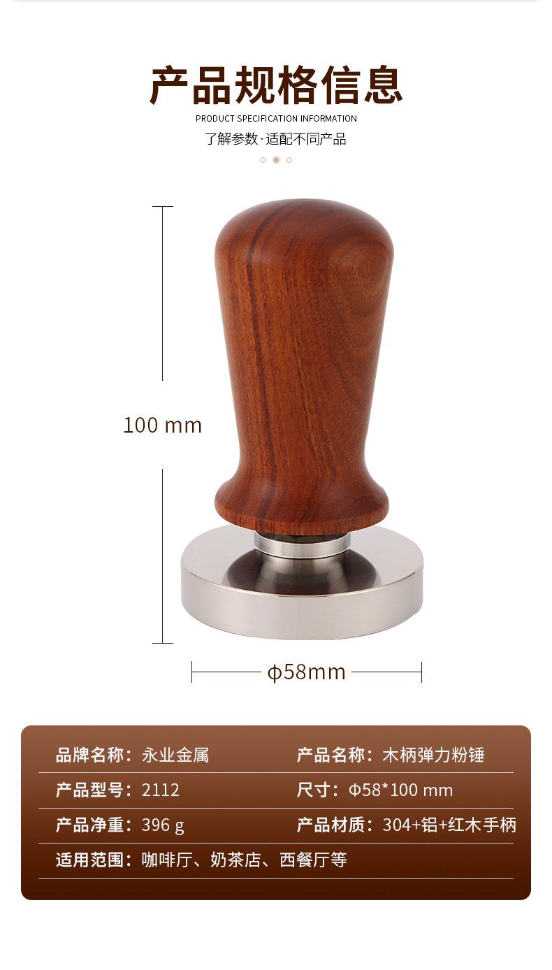 Prensa de café en polvo con mango de madera y martillo elástico, de acero inoxidable, con ajuste constante y presión sólida, para café en polvo.