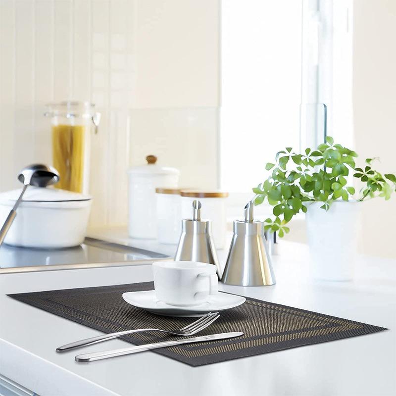 Mantel individual de PVC de doble marco Teslin, estilo chino, con compartimento para hotel, tapete para taza de té para mostrador de bar, mantel individual de rayas gruesas