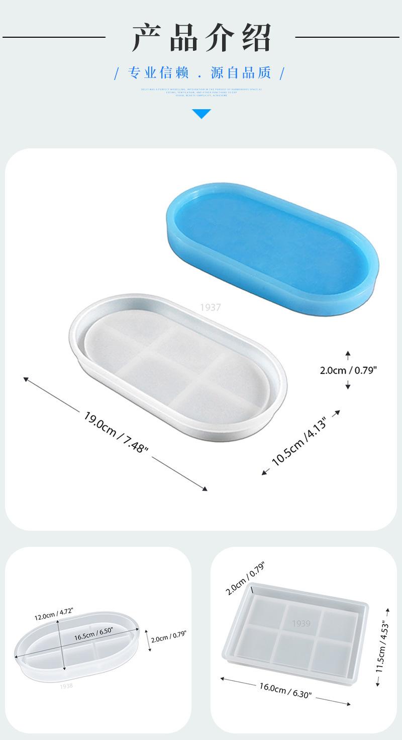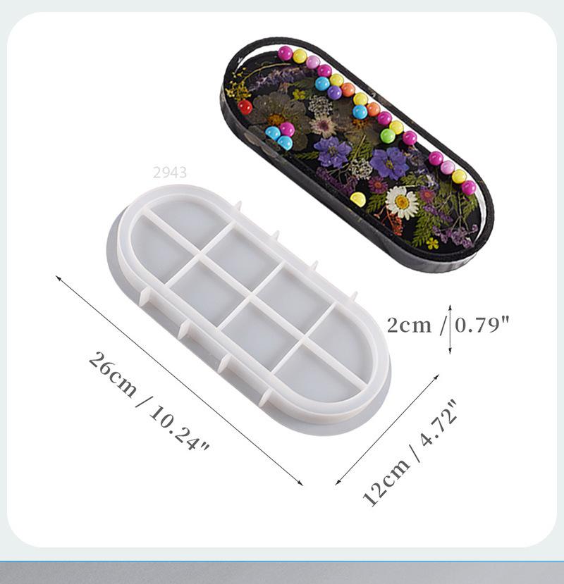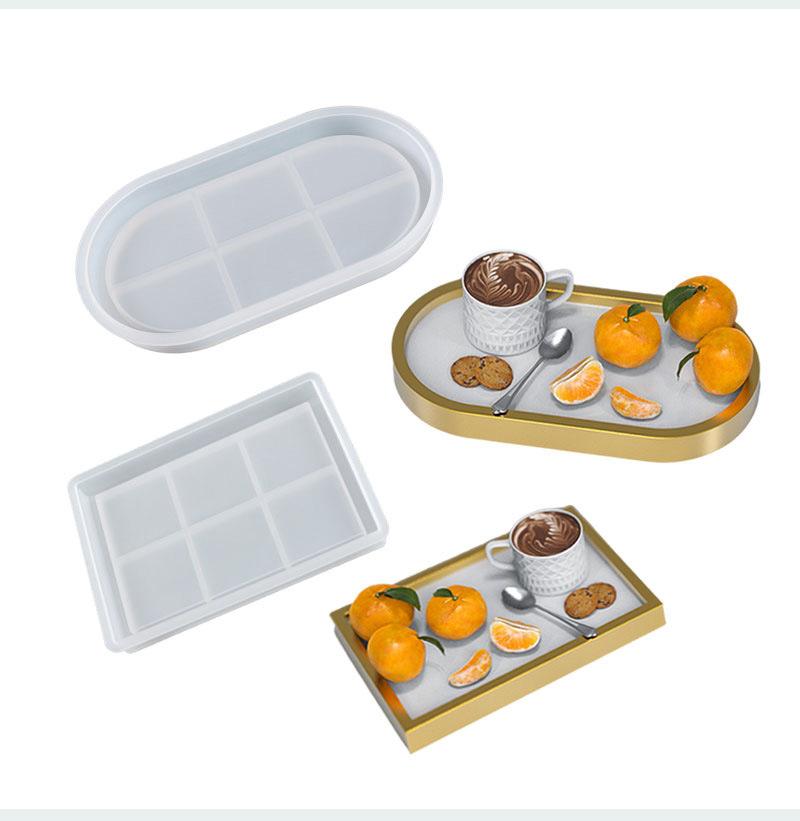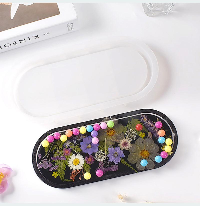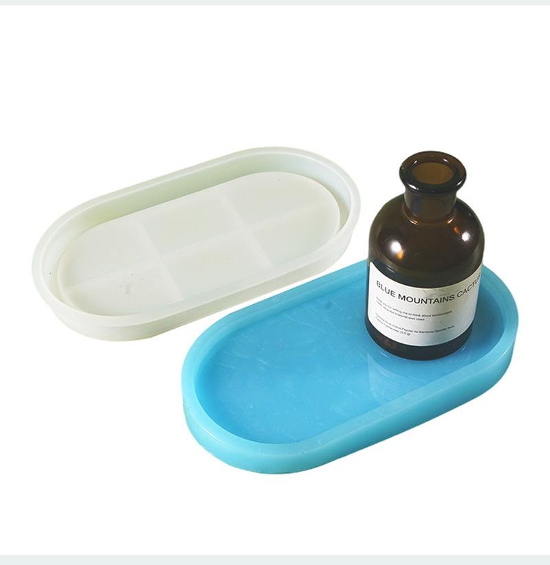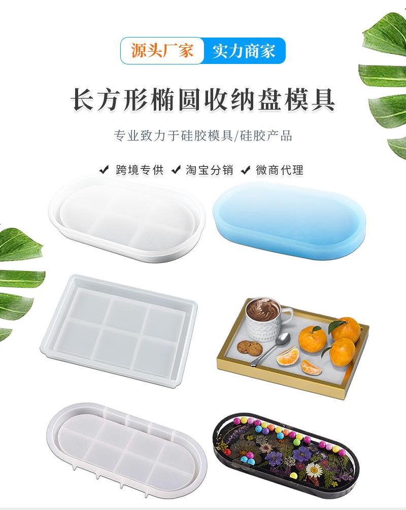 Molde de resina epoxi de cristal 428C, bandeja de almacenamiento rectangular ovalada con placa de espejo alto, molde de silicona al por mayor