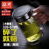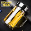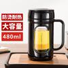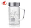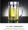 Taza de té de vidrio Fuguang de doble capa para hombre, de gran capacidad, con tapa y asa, para oficina, hogar, con filtro, con letras