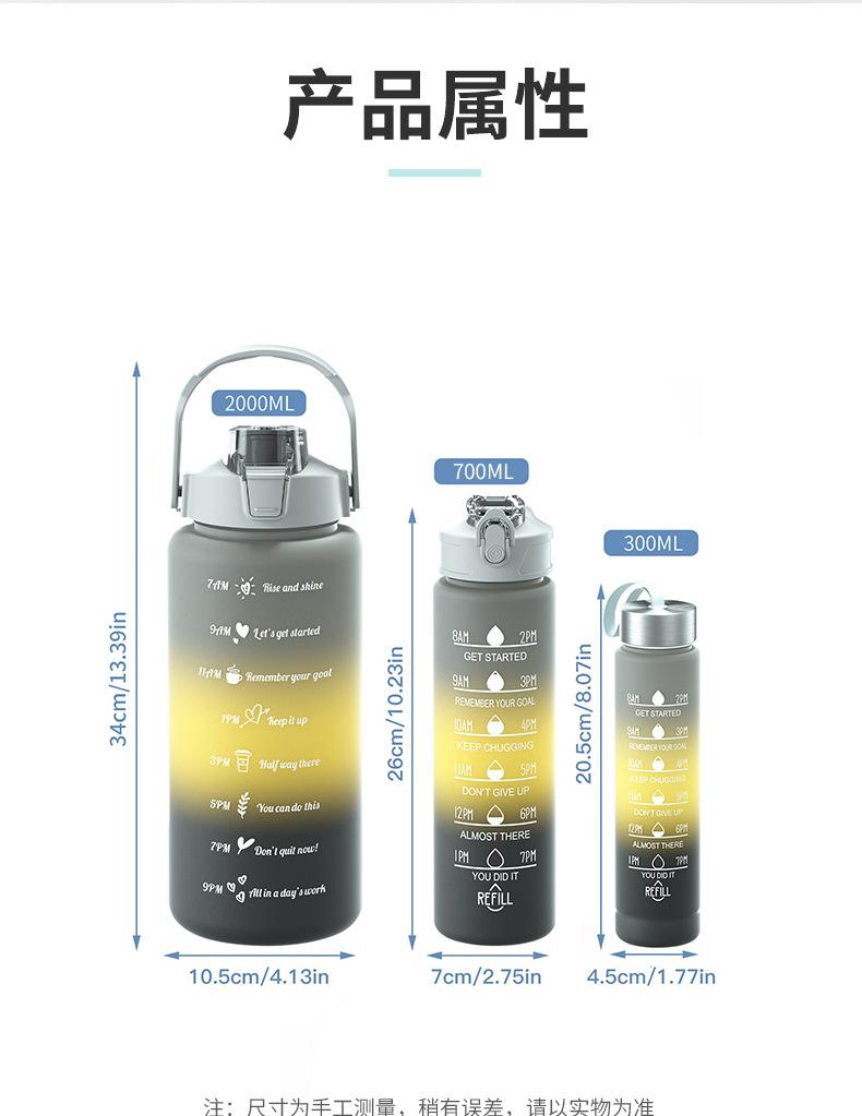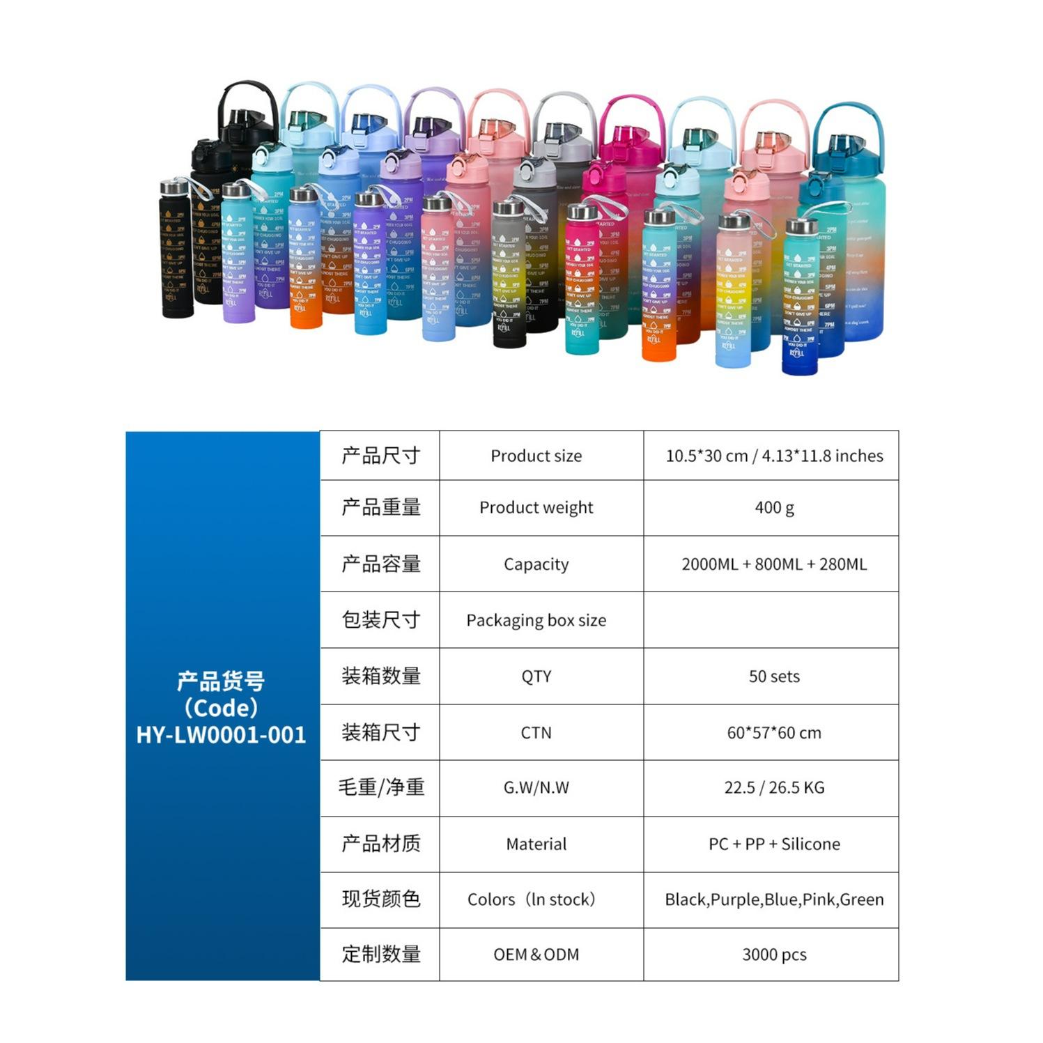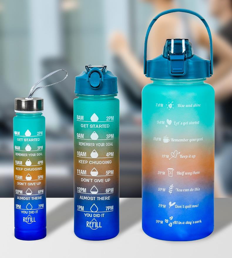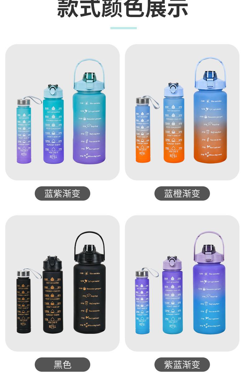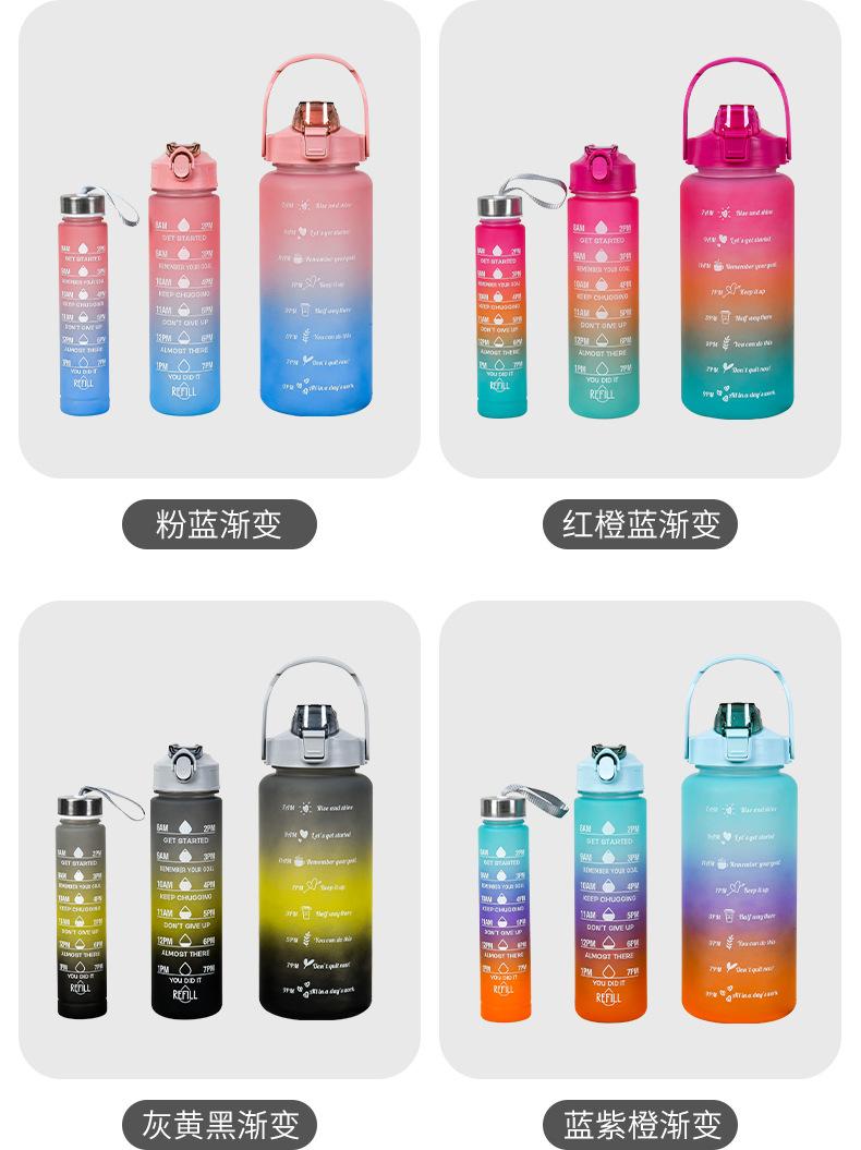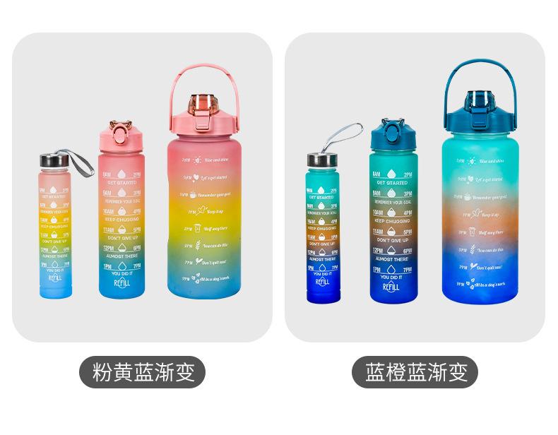 Vaso de Agua para Deportes al Aire Libre de Gran Capacidad Botella de Agua para Fitness para Niños Verano Resistente a Altas Temperaturas Vaso de Plástico Degradado Juego de Tres Piezas