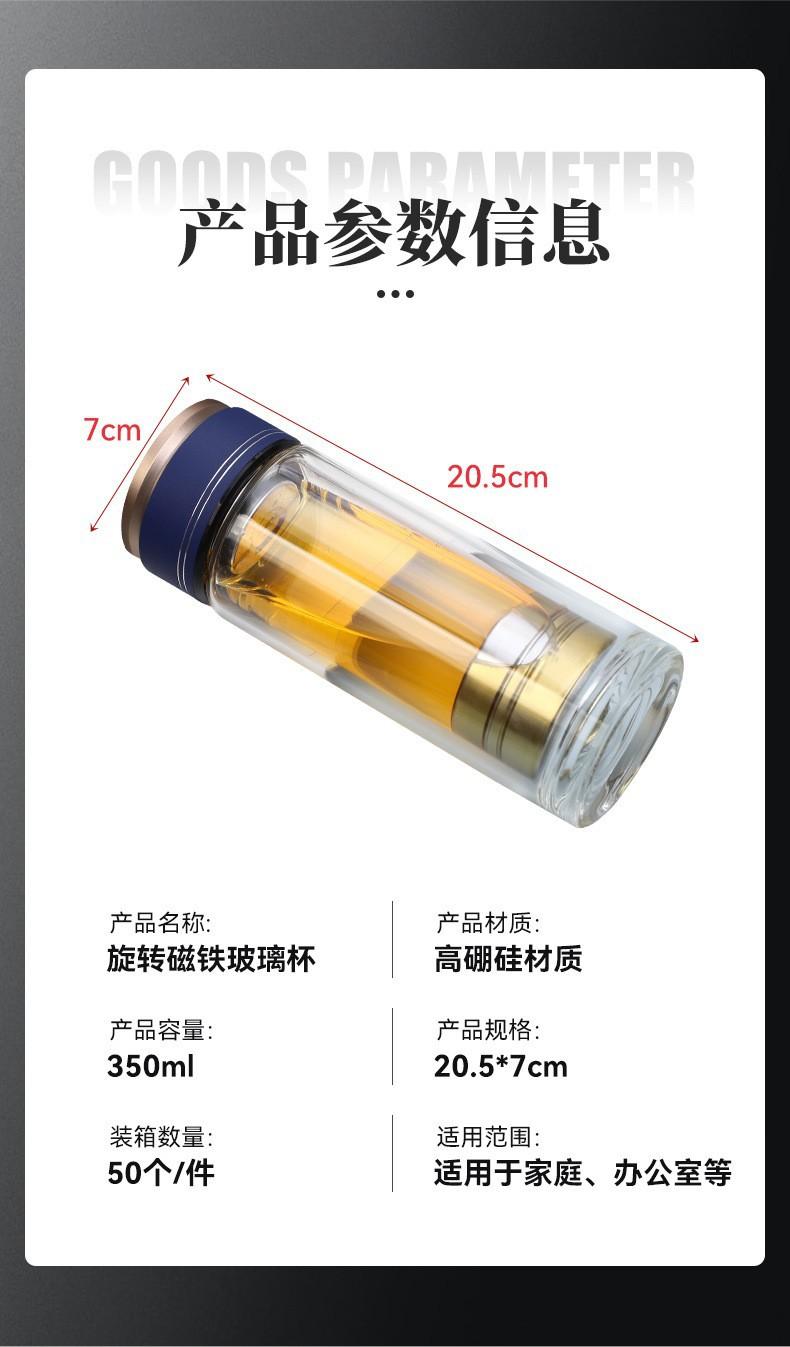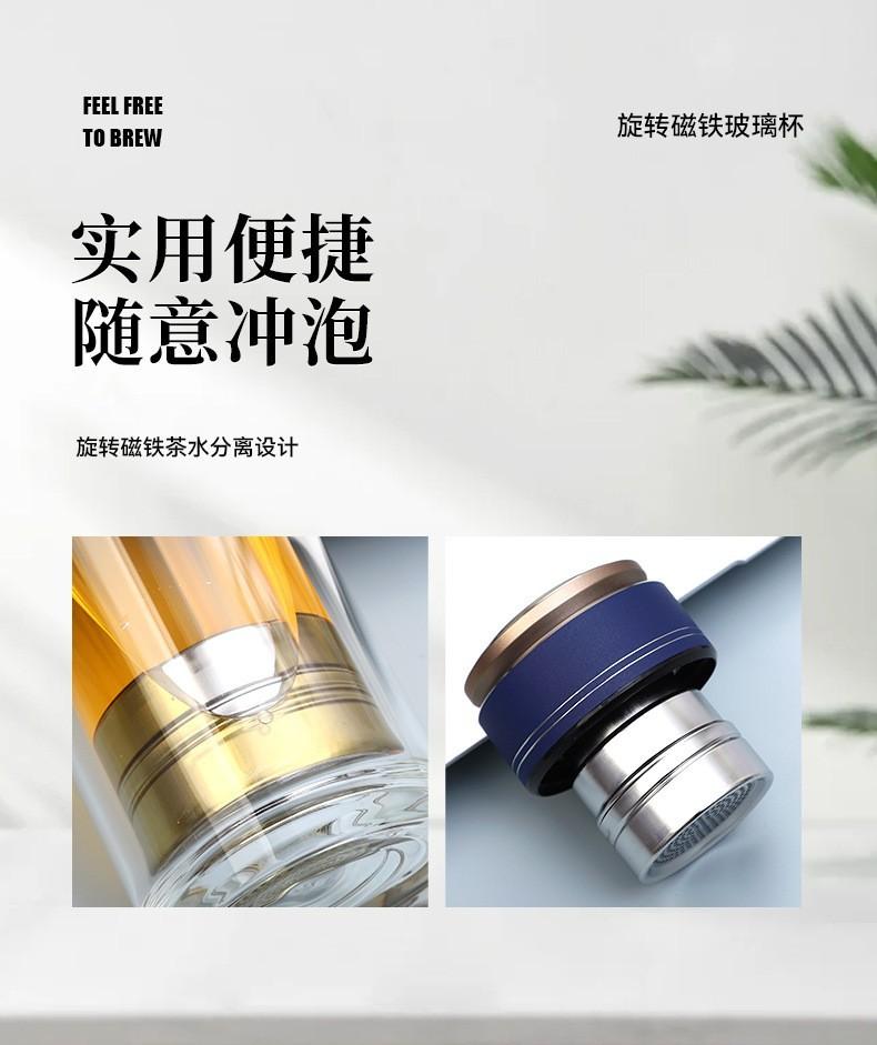 Taza de Té Magnética Giratoria Regalo Taza de Vidrio para Té Doble Capa Resistente a Altas Temperaturas Taza de Té para Oficina Venta al por Mayor Magnética Giratoria