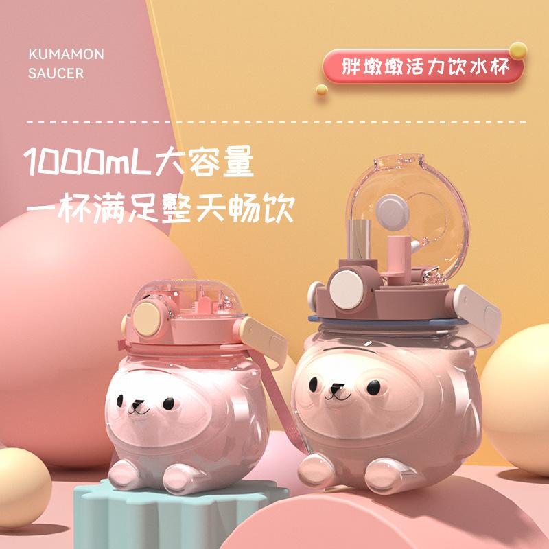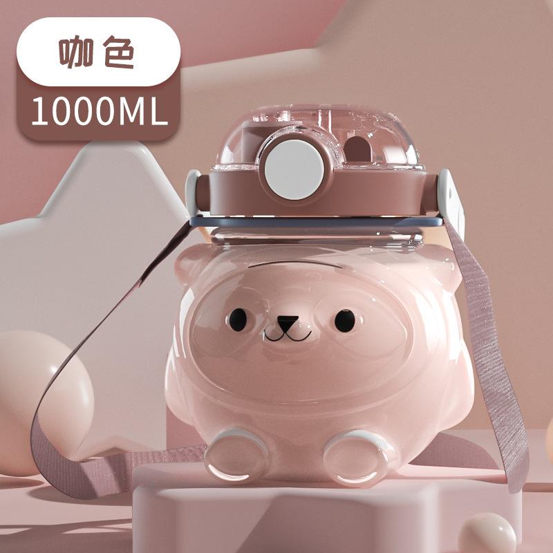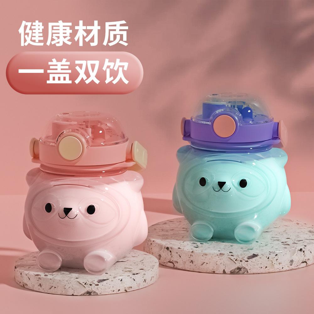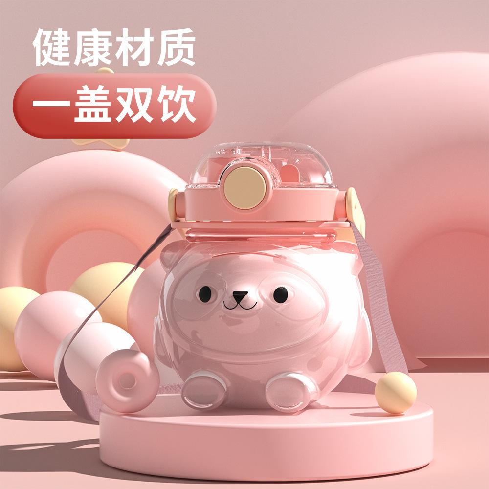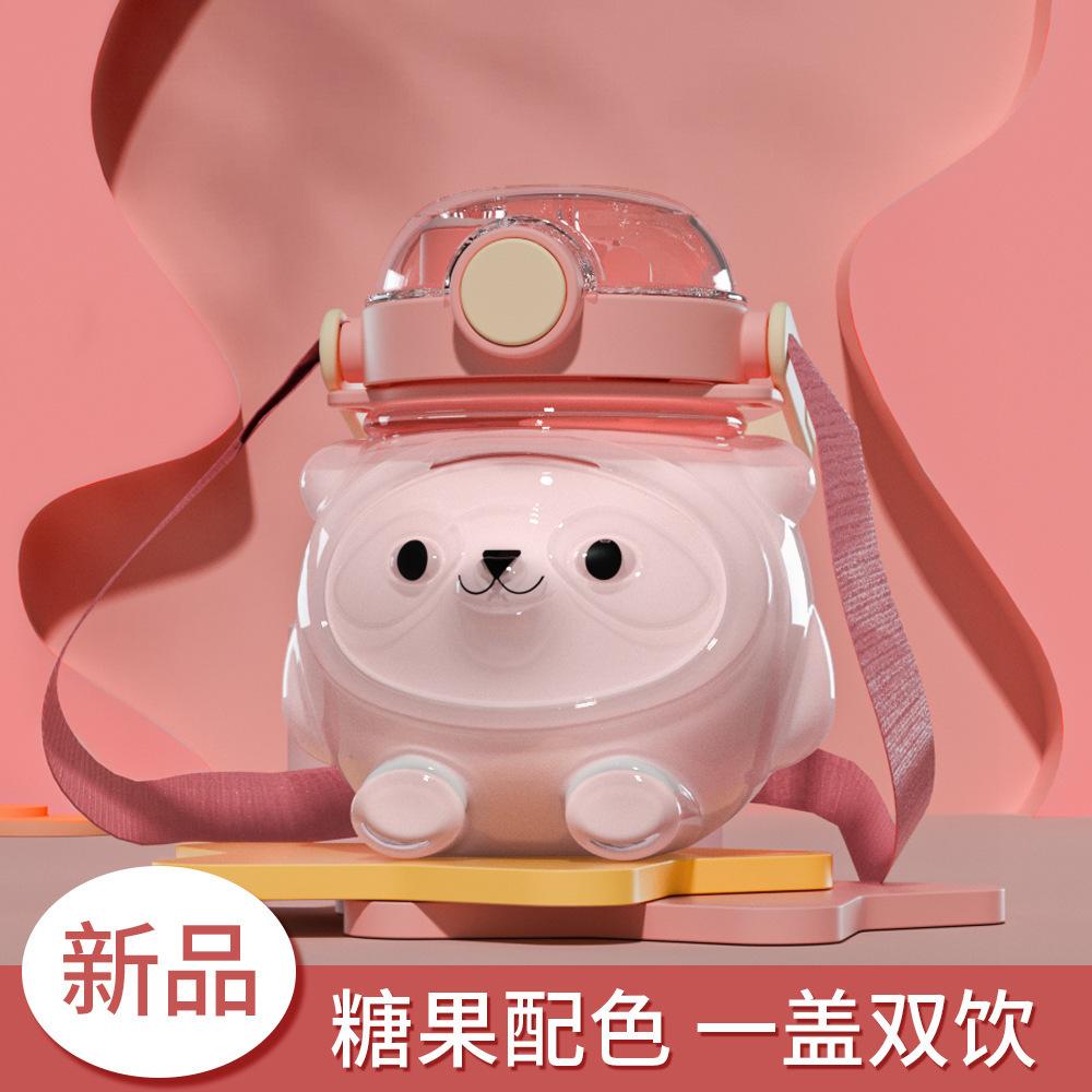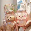 Lindo Vaso de Agua de Oso para Mujer Popular en Internet Alto Valor de Color Plástico Doble Bebida Vaso con Ventosa Verano Estudiante Portátil Hervidor de Gran Capacidad