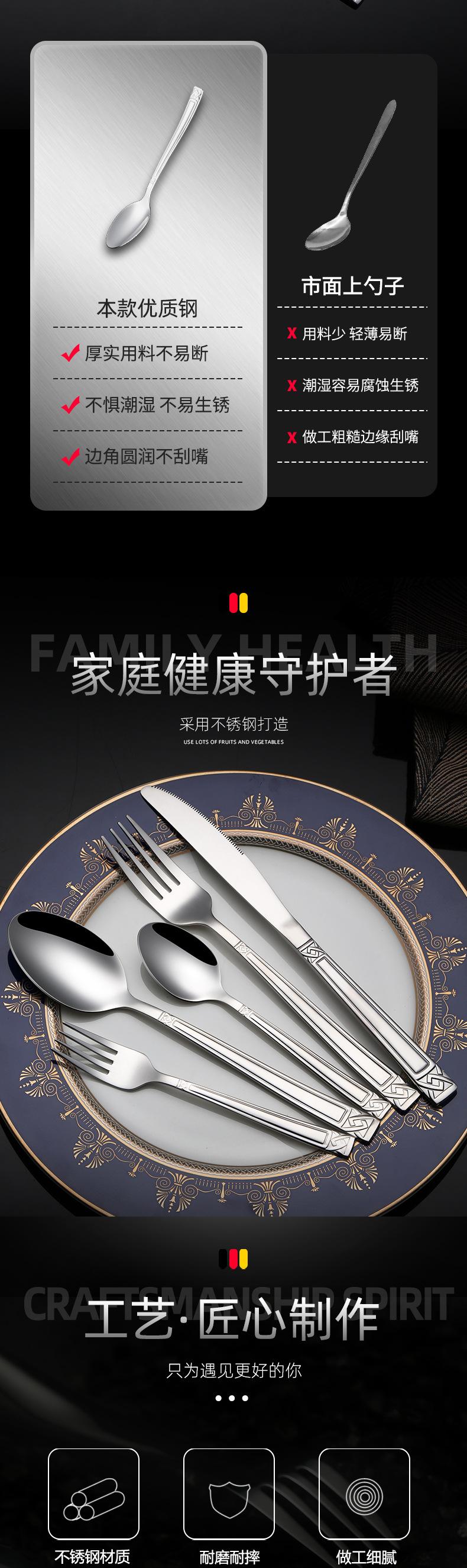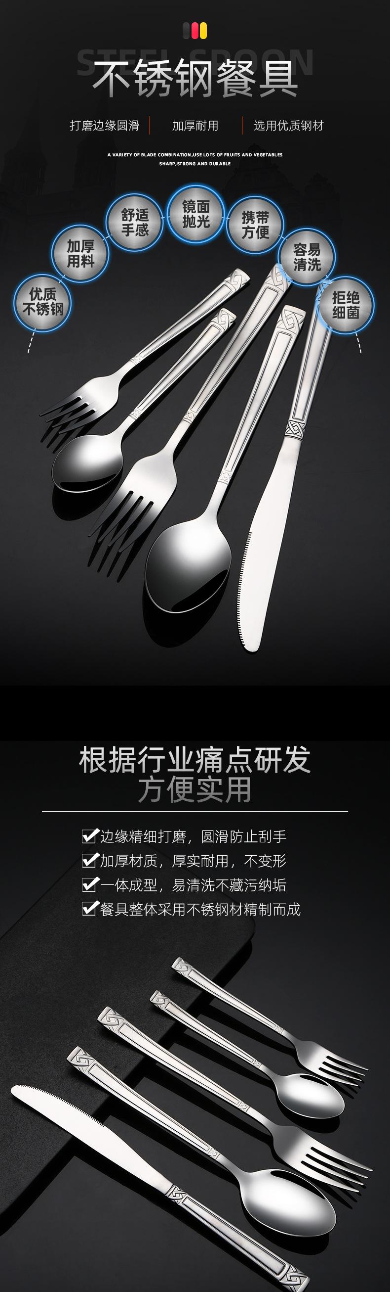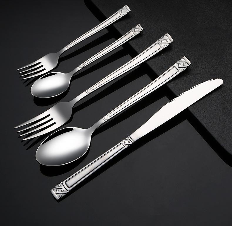 Juego de cubiertos occidentales de acero inoxidable con mango cuadrado en forma de diamante, cuchillo, tenedor y cuchara, para hotel, cuchillo para bistec y tenedor, para uso doméstico, cuchara redonda para comer, cuchara para mezclar