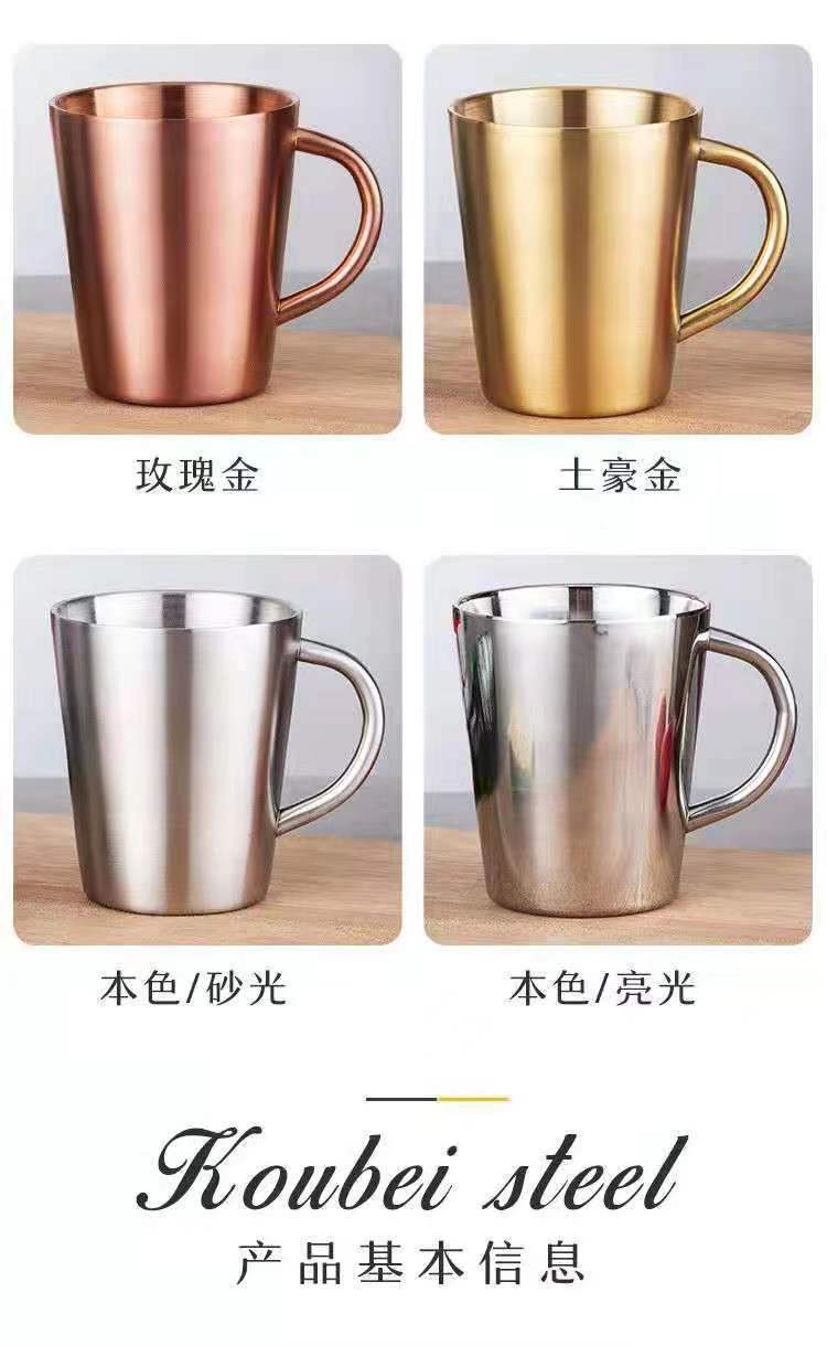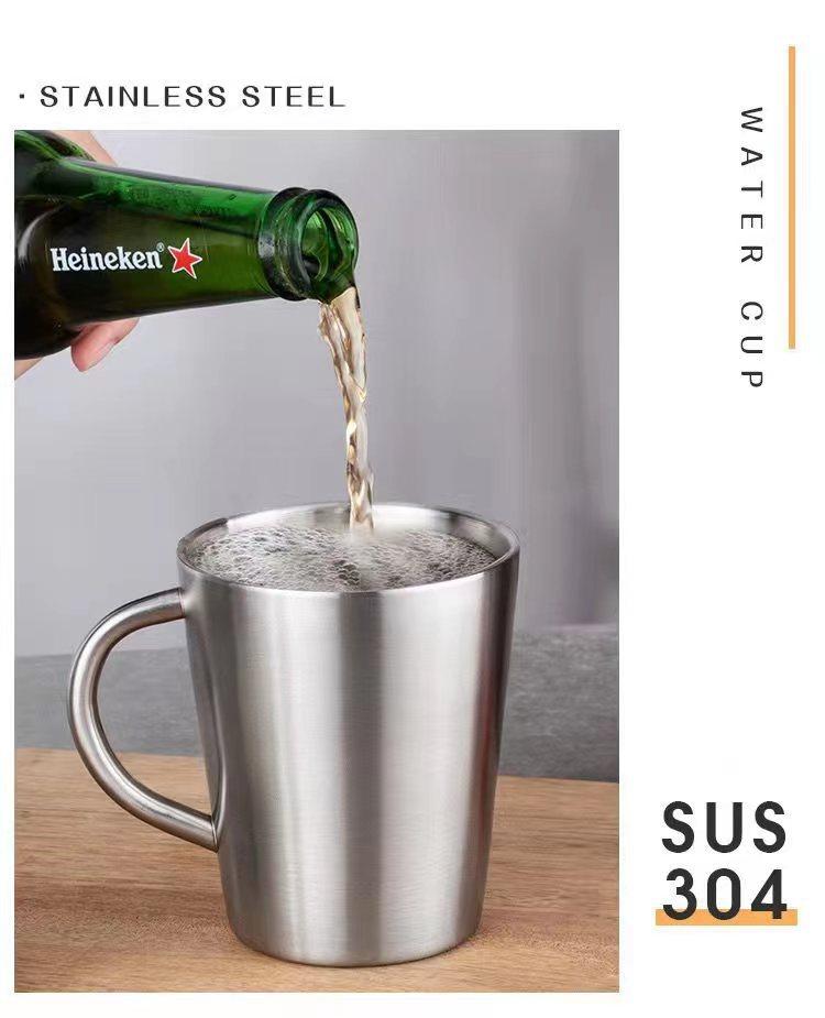 Taza de acero inoxidable 304 para oficina, con doble aislamiento, para café, leche y té, con asa