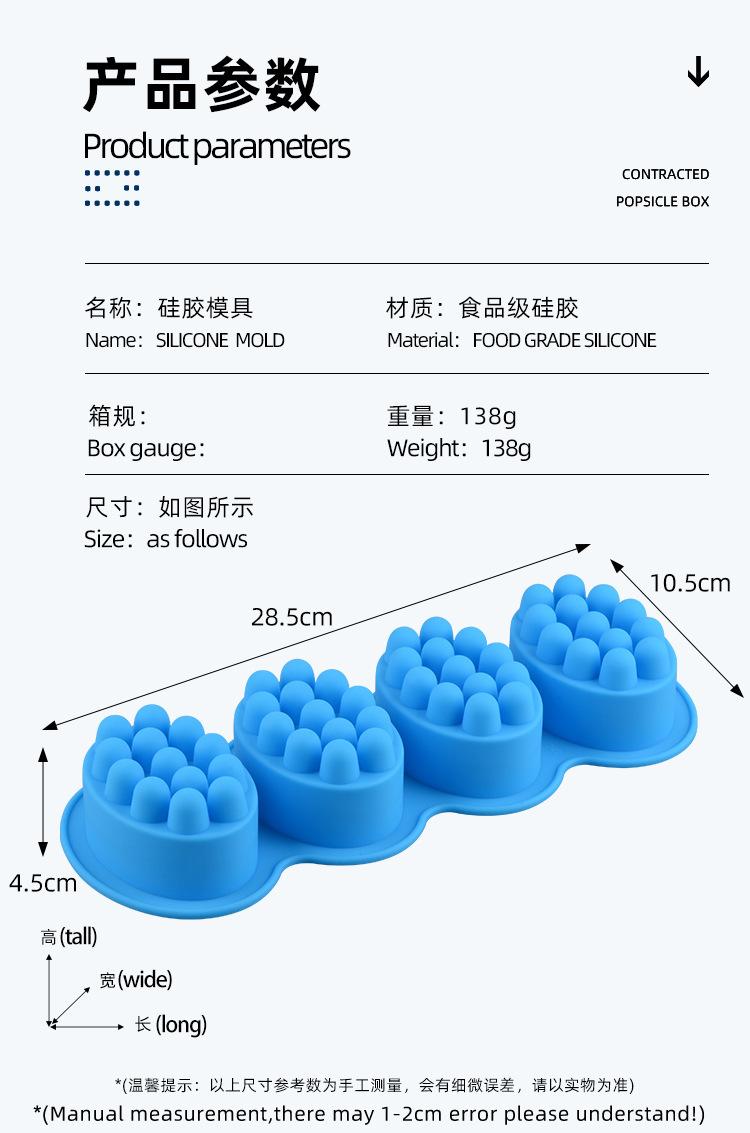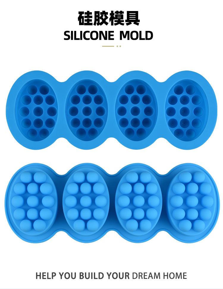 Molde de silicona para jabón ovalado de 4 cavidades para masaje transfronterizo, molde para jabón de masaje, molde para jabón de masaje, herramienta para moler jabón hecho a mano