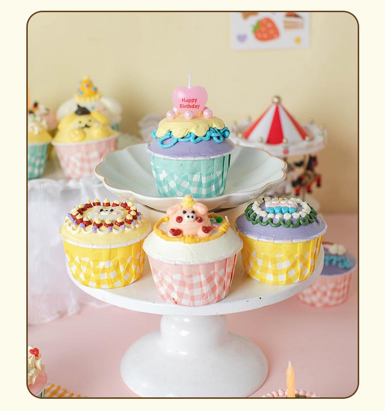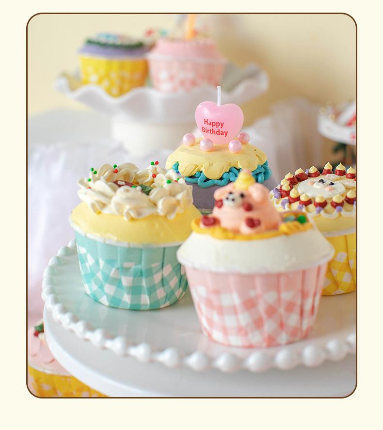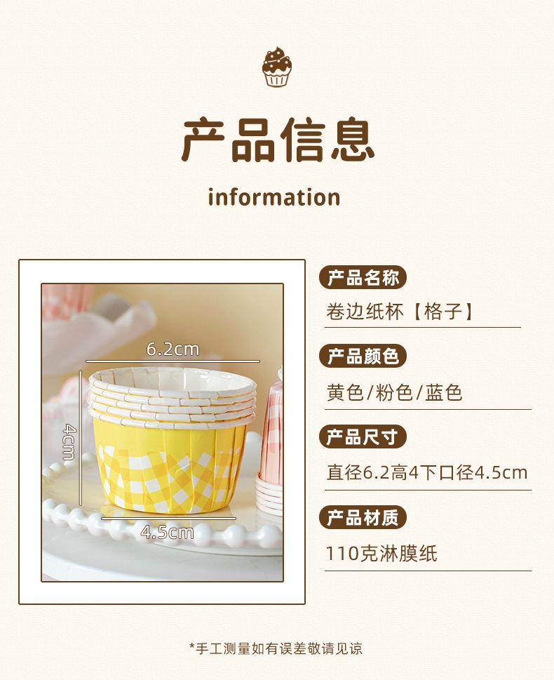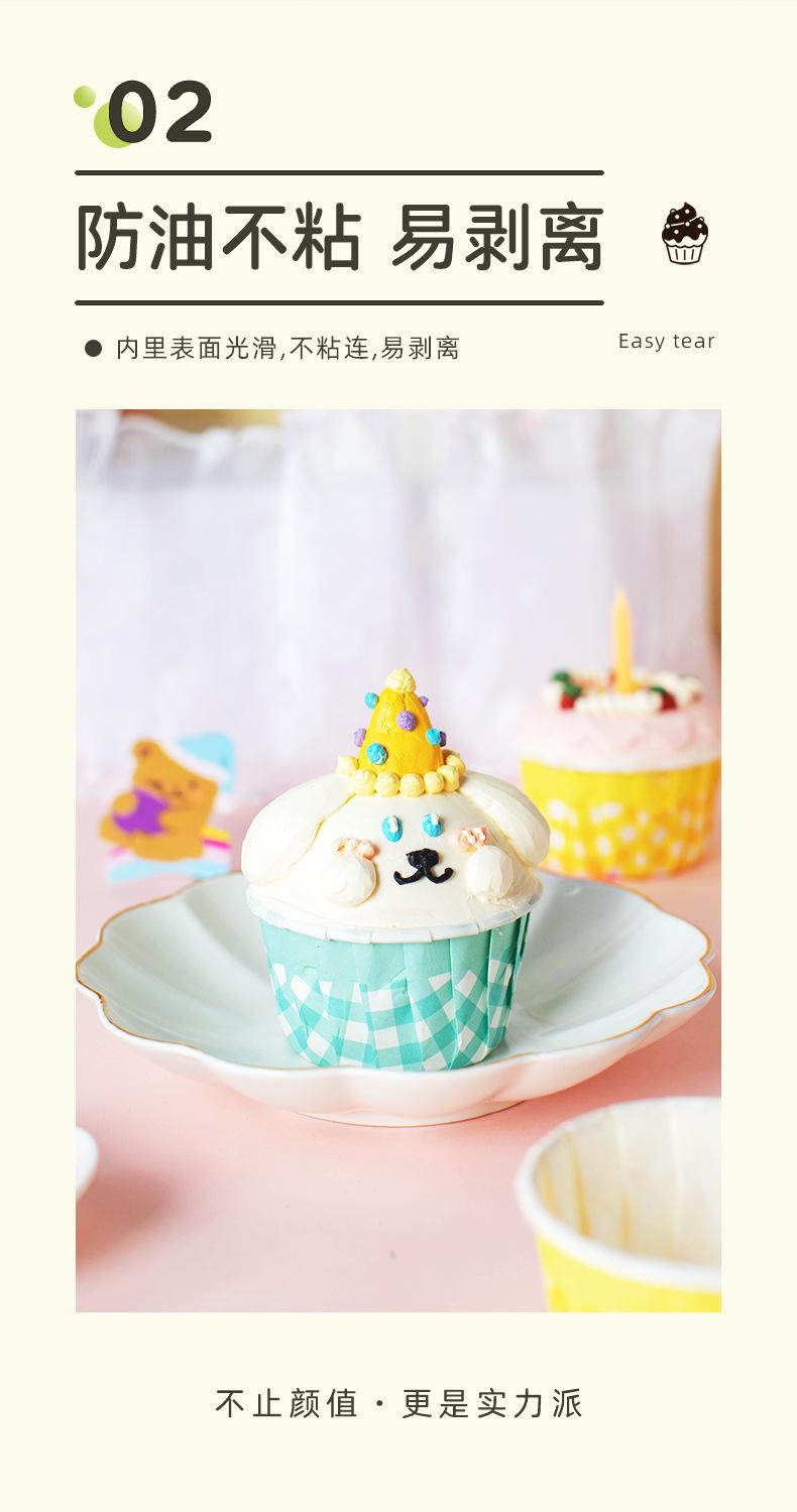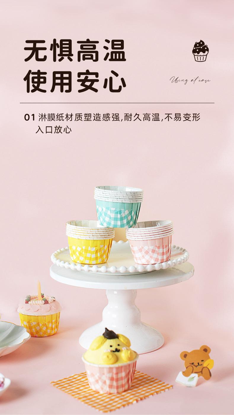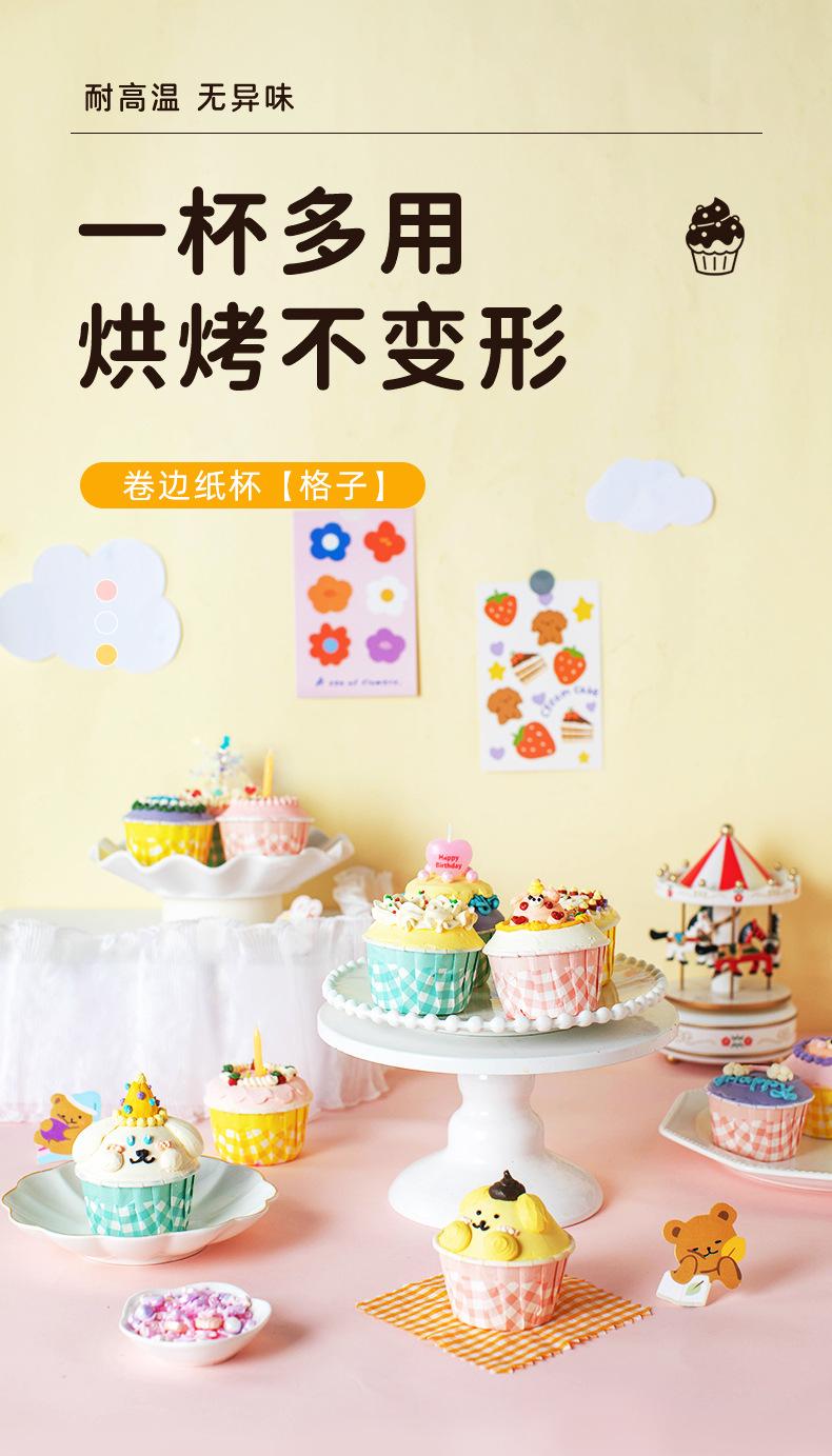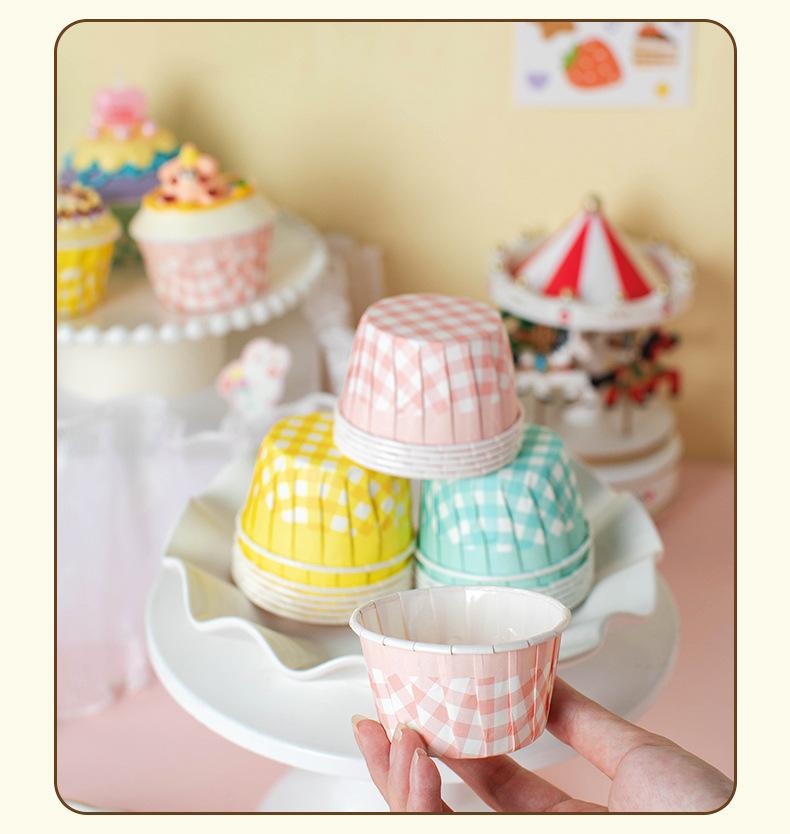 Taza de papel rizada a cuadros retro de color para muffins, pasteles y tartas, con película resistente a altas temperaturas, ideal para cumpleaños y muffins.