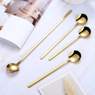 | Cuchara de acero inoxidable 304, mango largo, cuchara redonda pequeña, cuchara creativa para revolver café, cuchara extendida de postre, se puede personalizar con logotipo |