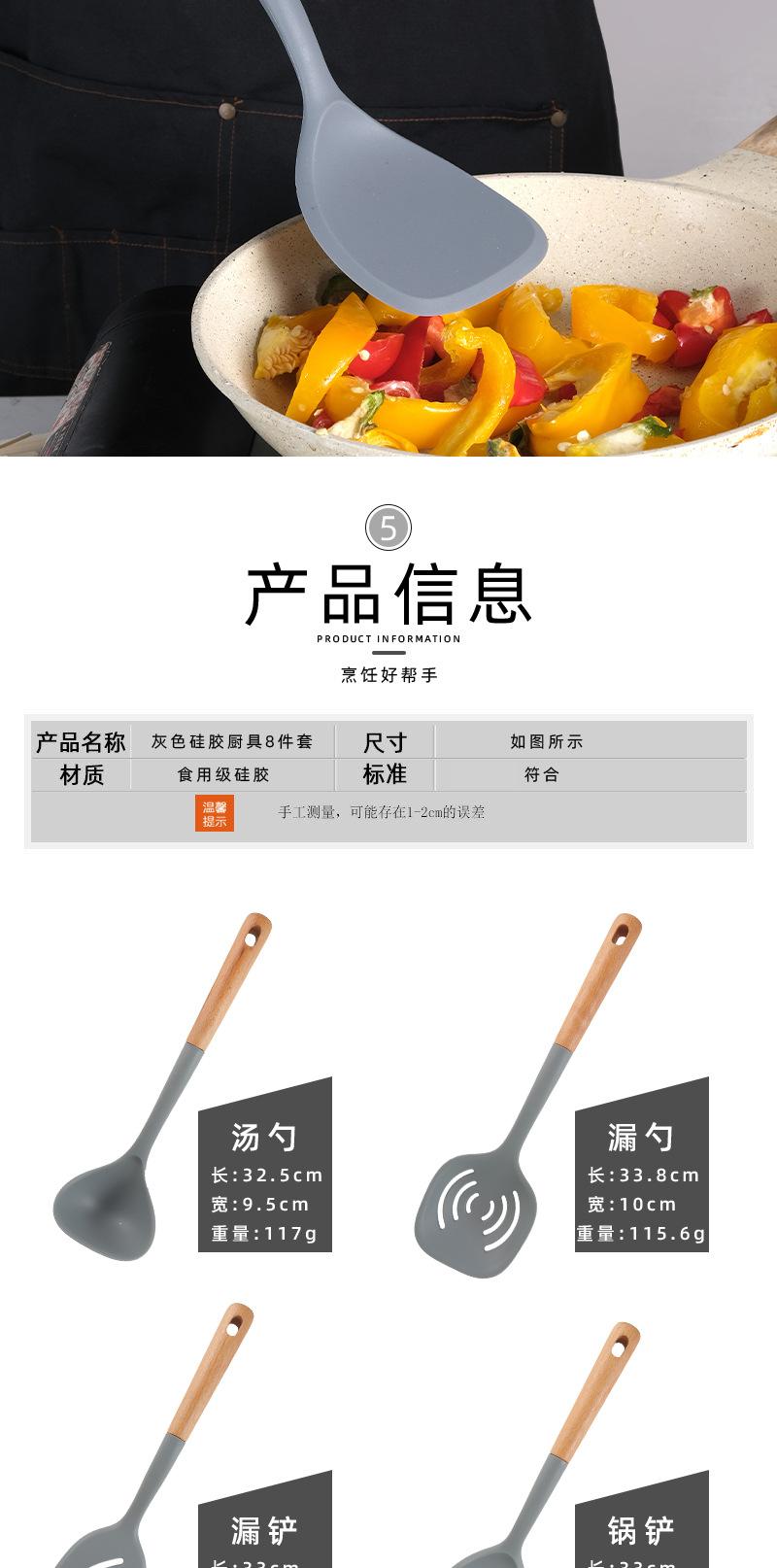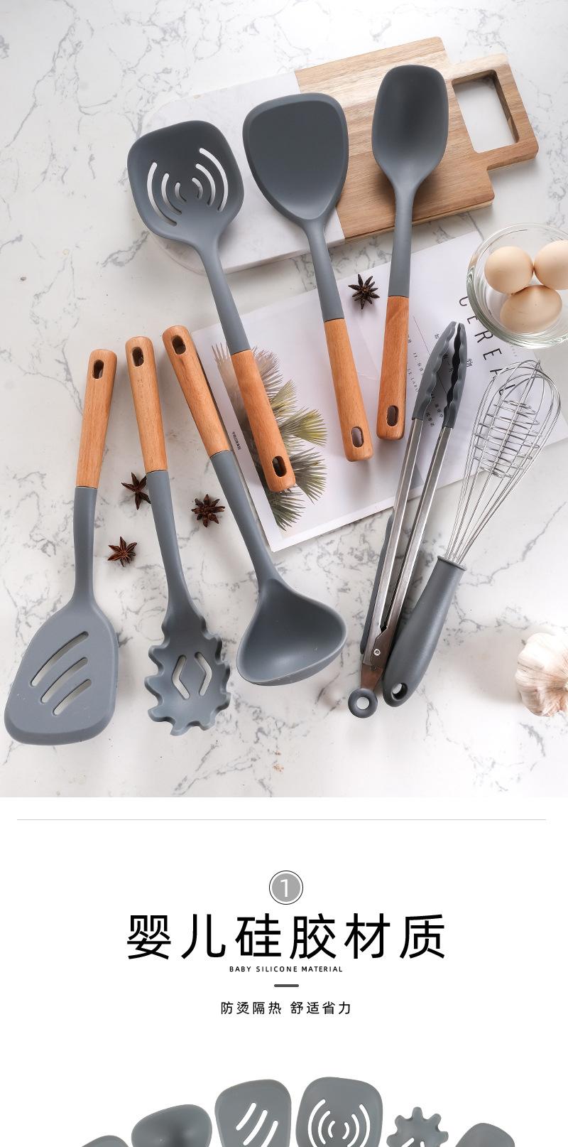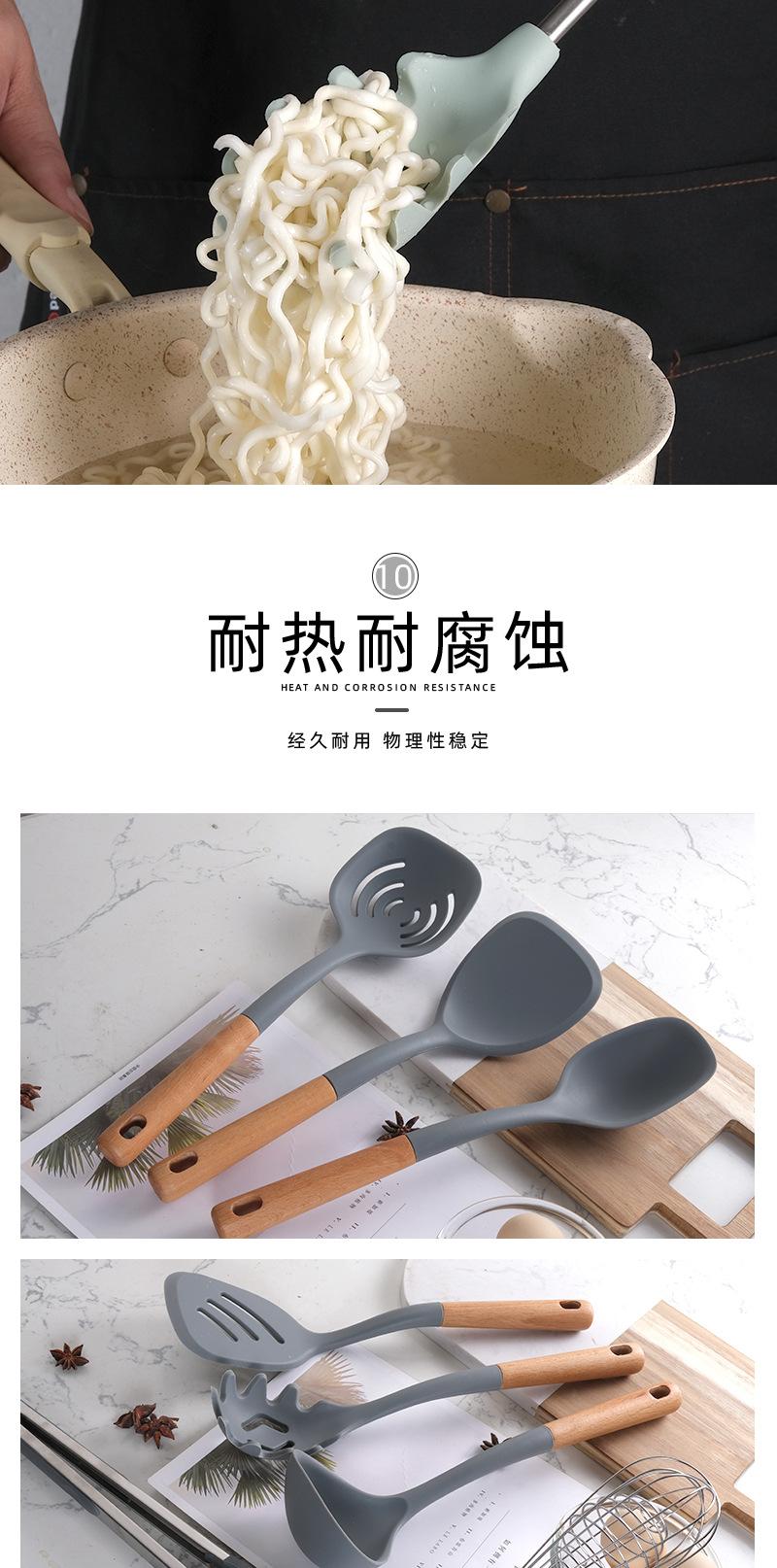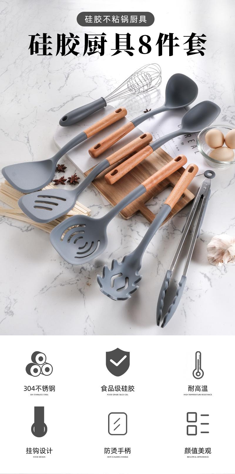 Nuevo juego de utensilios de cocina de silicona con mango de madera a media altura, 8 piezas, apto para cocina de silicona, espátula doméstica resistente a altas temperaturas.