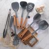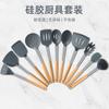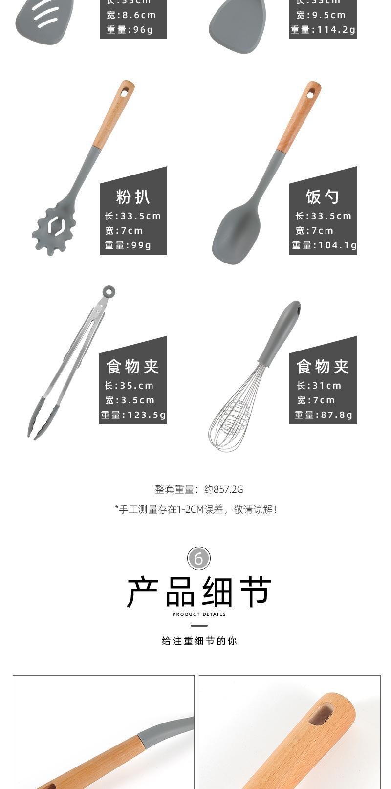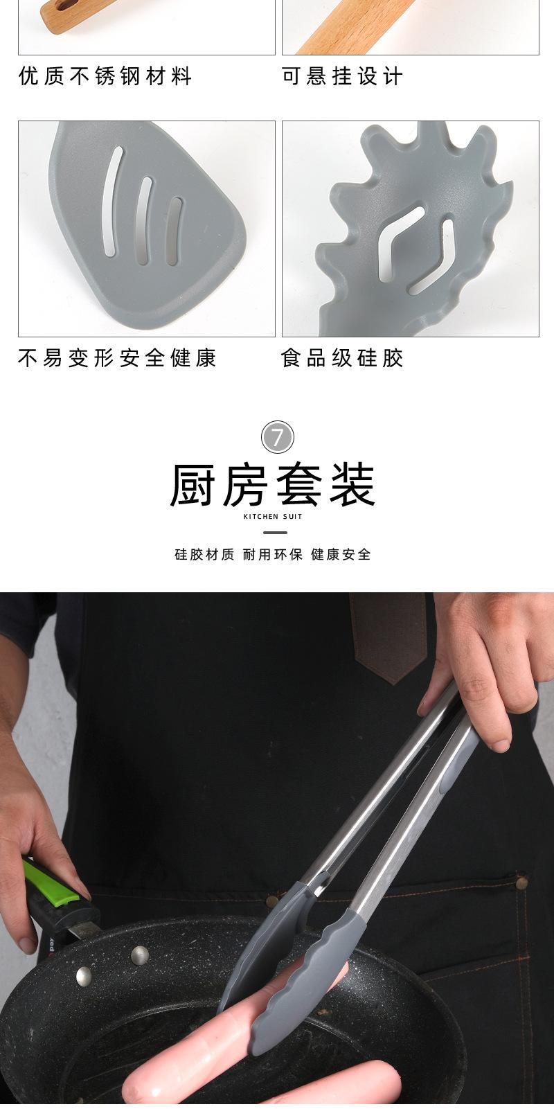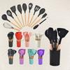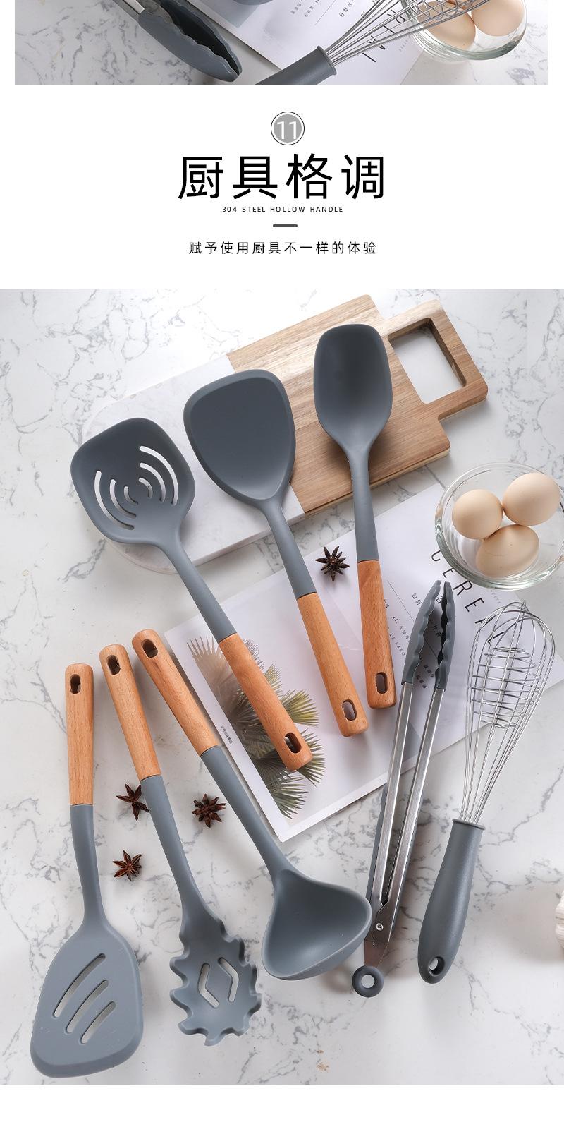 Nuevo juego de utensilios de cocina de silicona con mango de madera a media altura, 8 piezas, apto para cocina de silicona, espátula doméstica resistente a altas temperaturas.