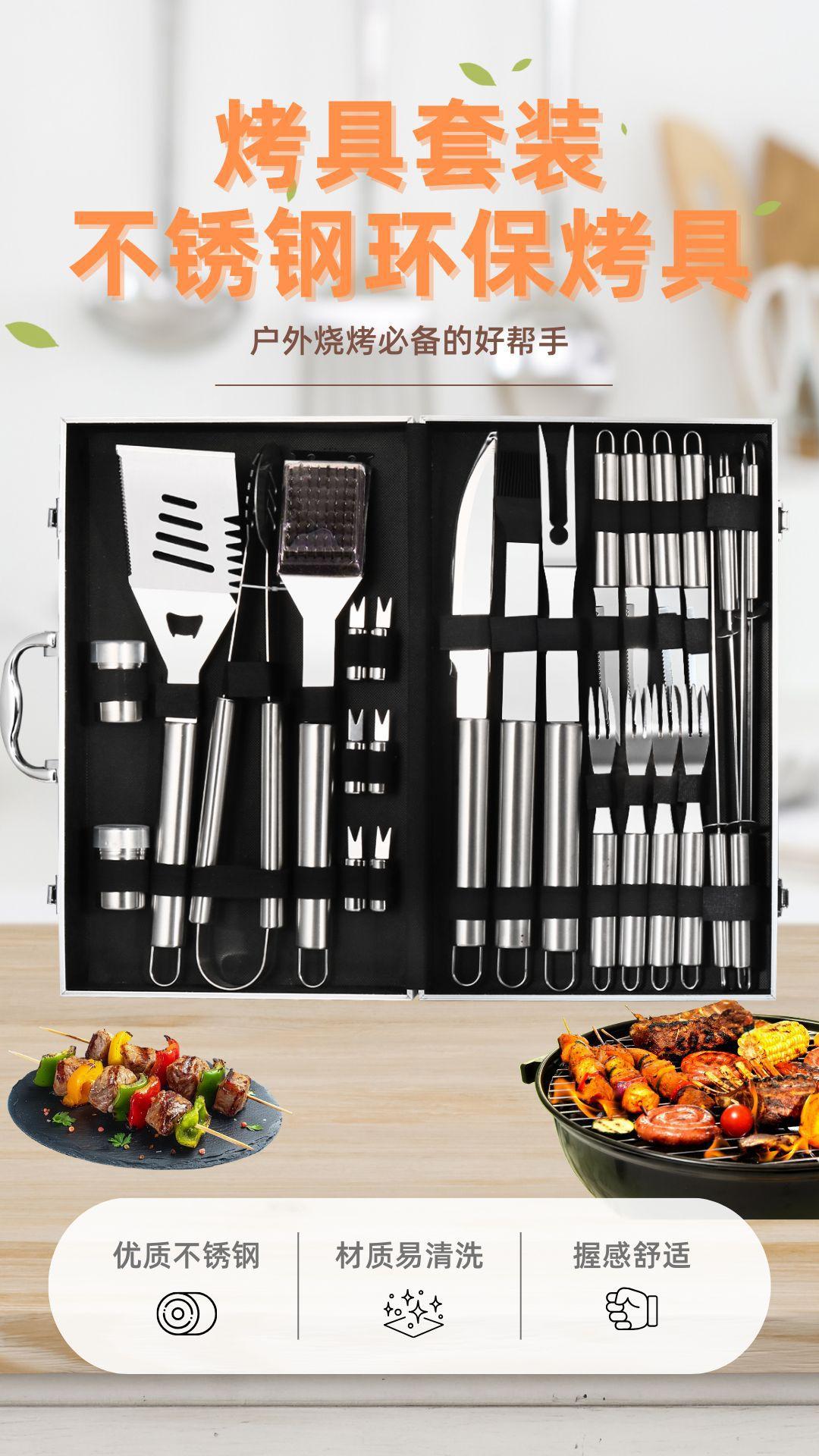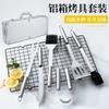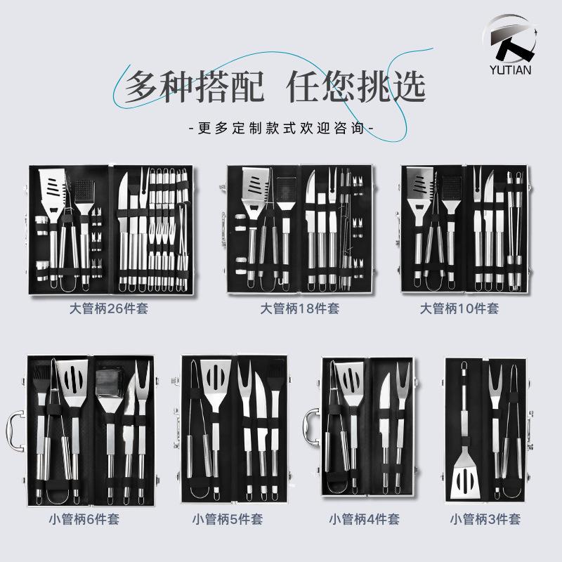 Combinación de herramientas para barbacoa al aire libre, caja de aluminio de acero inoxidable, tubo para barbacoa, juego de 20 de seis piezas, juego de caja de aluminio de 26 piezas
