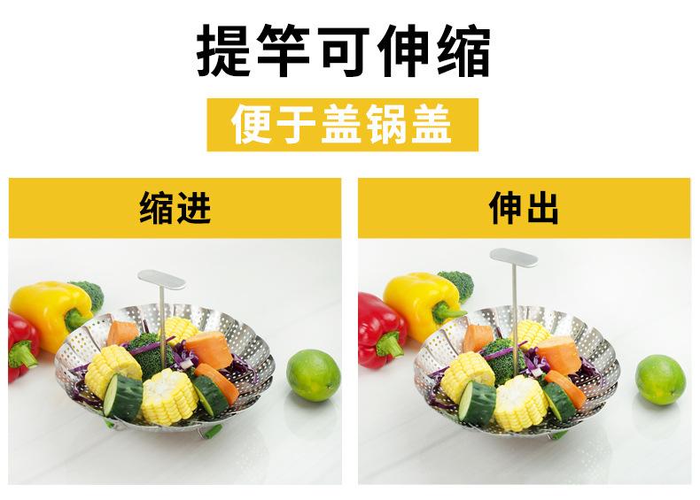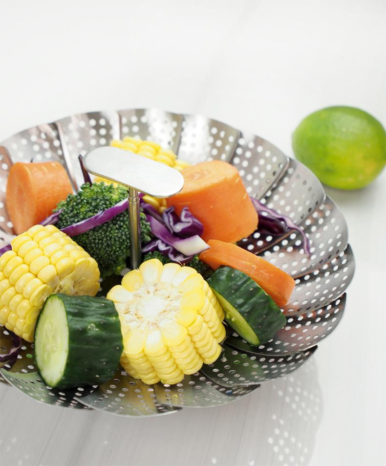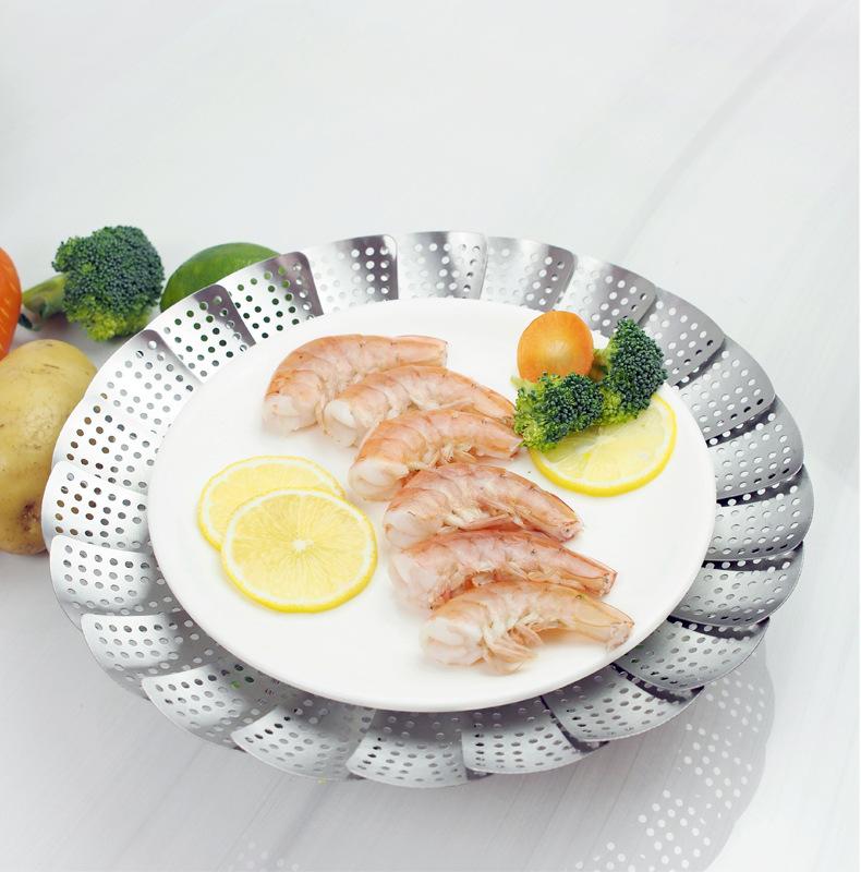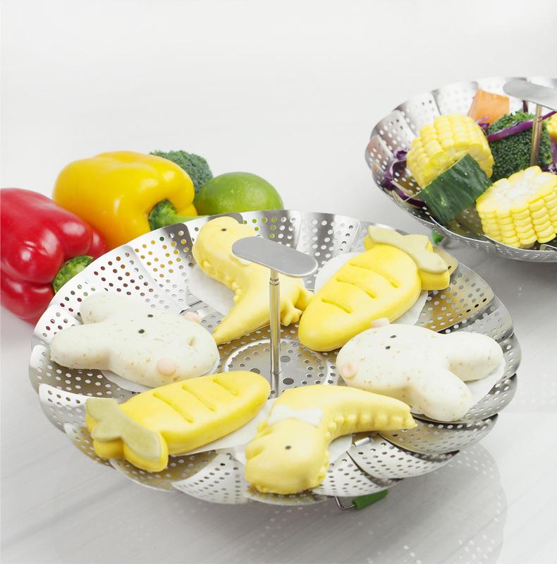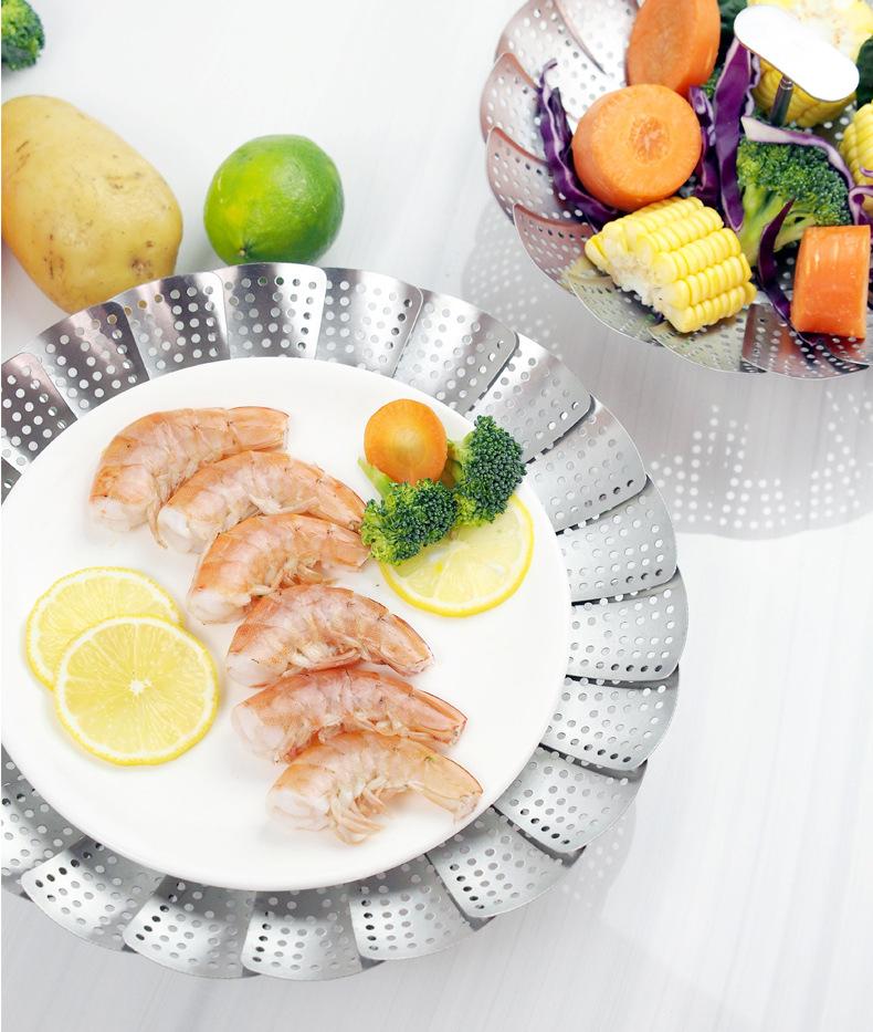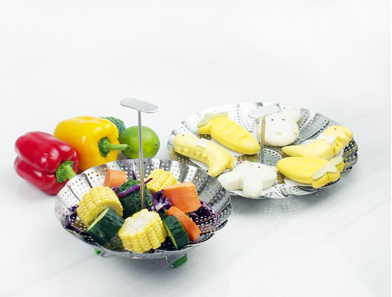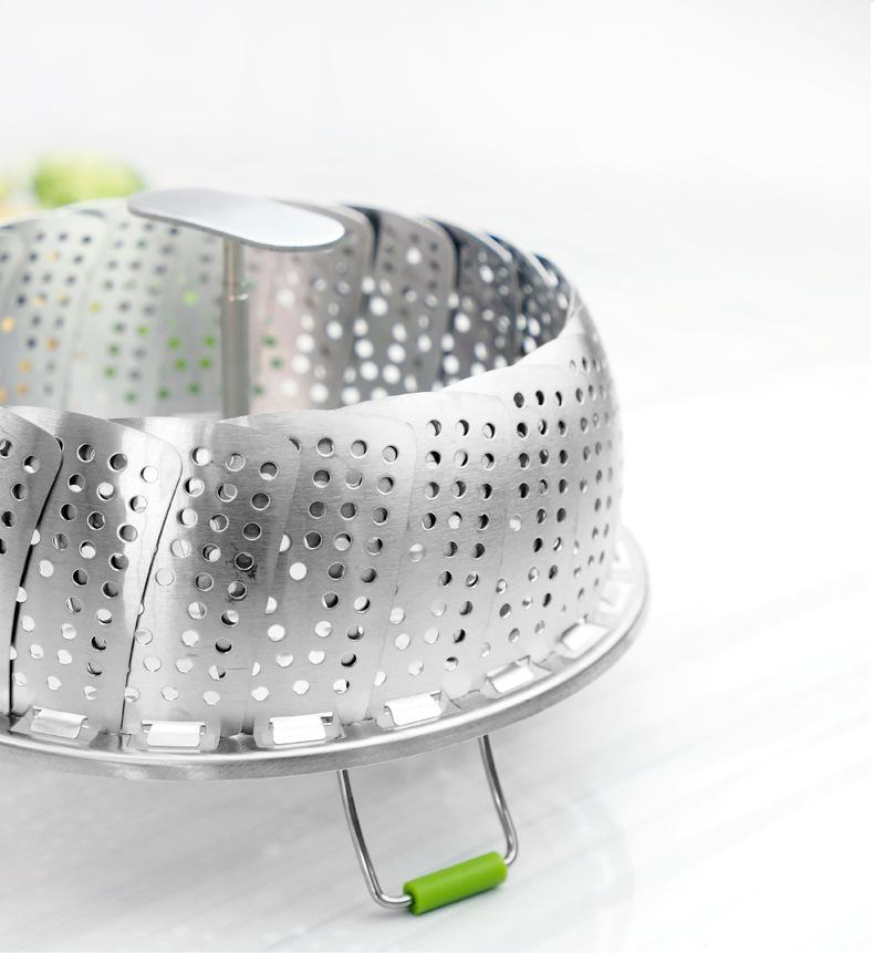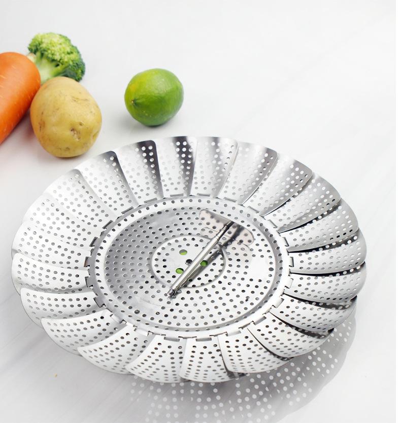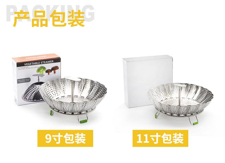 Vaporera de variedad de acero inoxidable en caja de color, mango extensible, vaporera plegable, plato vaporera, juego de vaporera telescópica