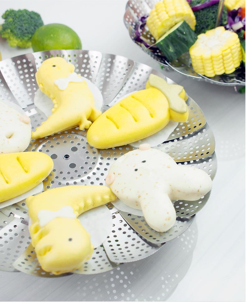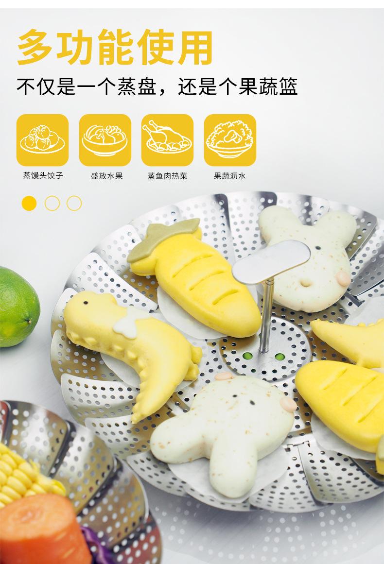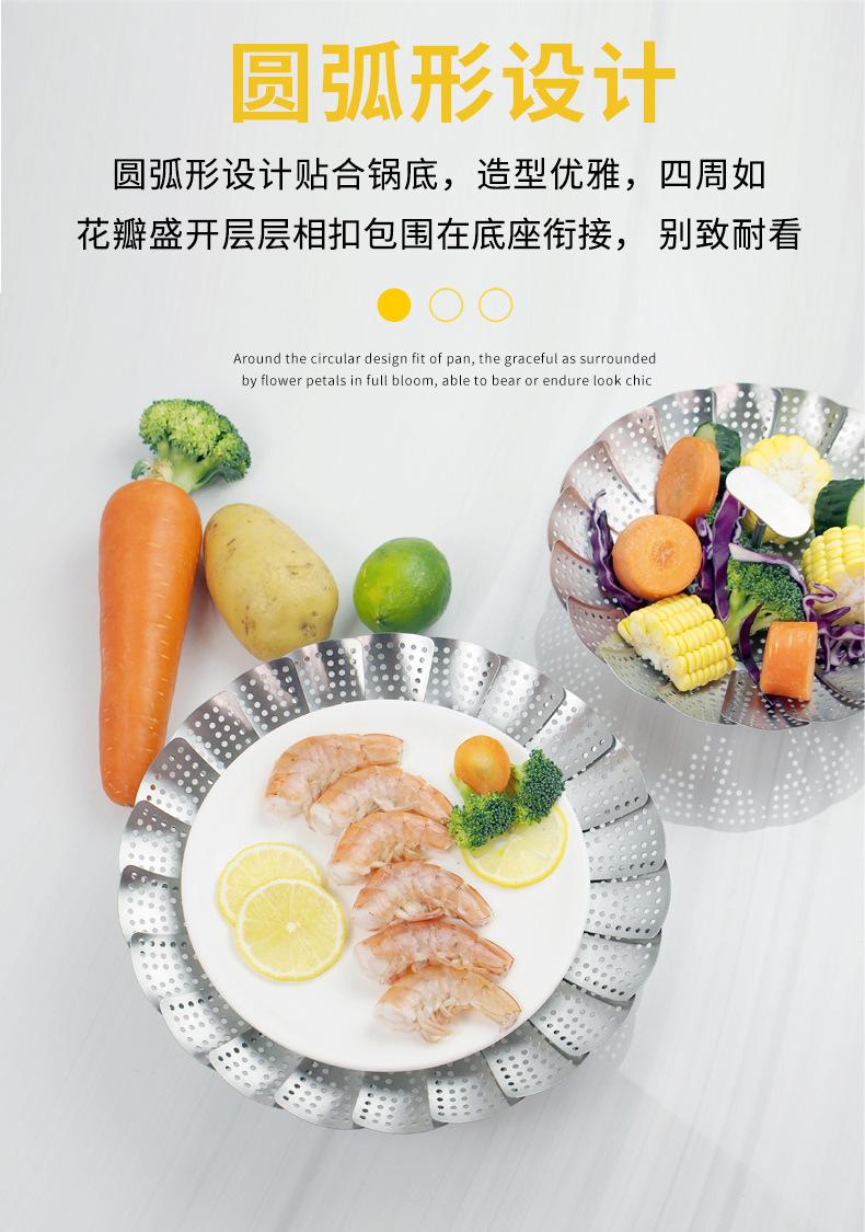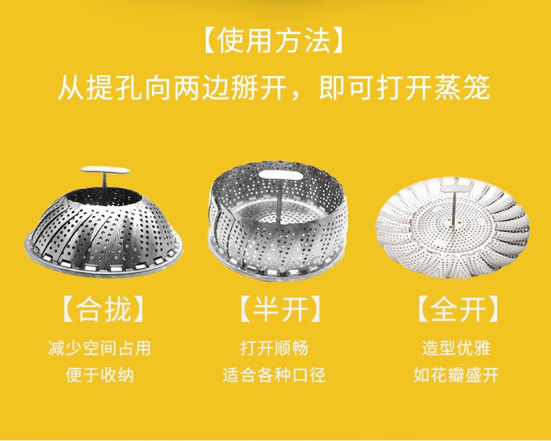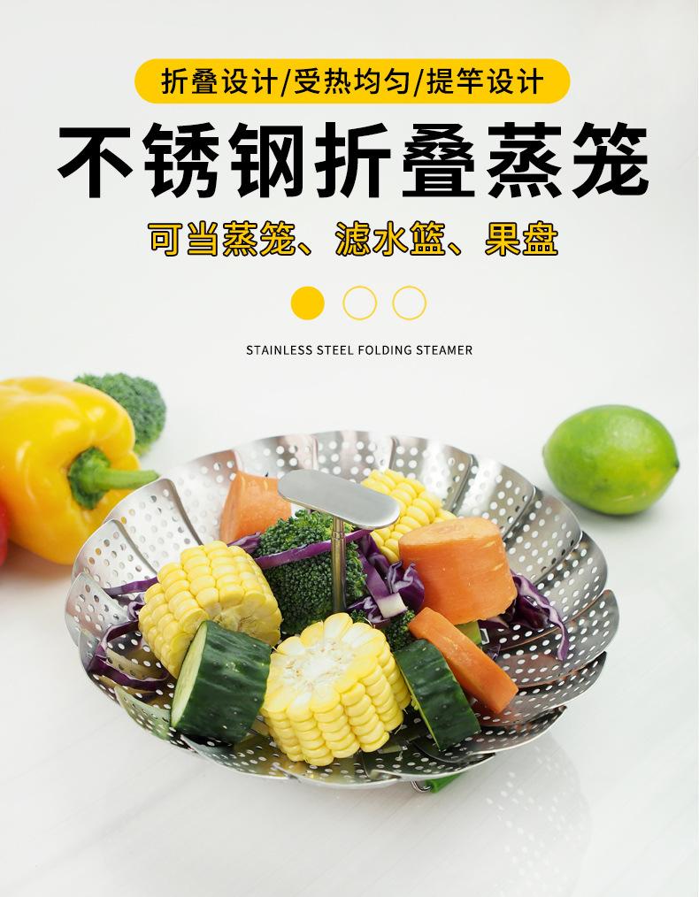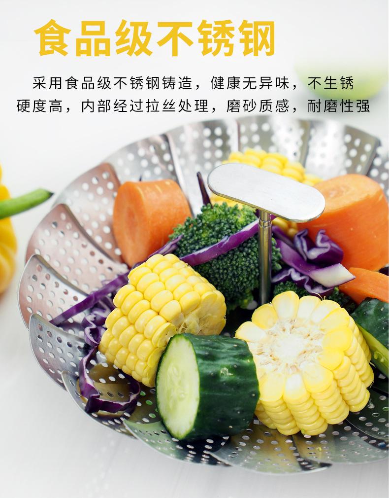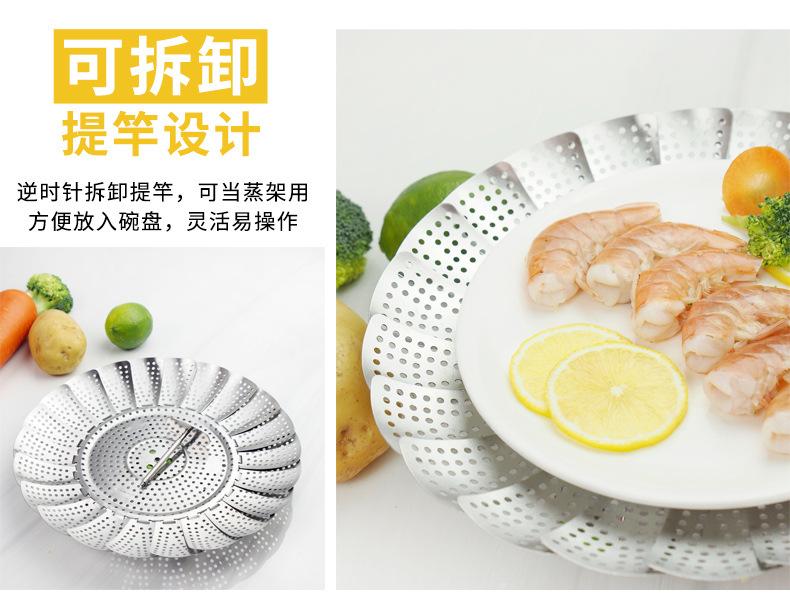 Vaporera de variedad de acero inoxidable en caja de color, mango extensible, vaporera plegable, plato vaporera, juego de vaporera telescópica